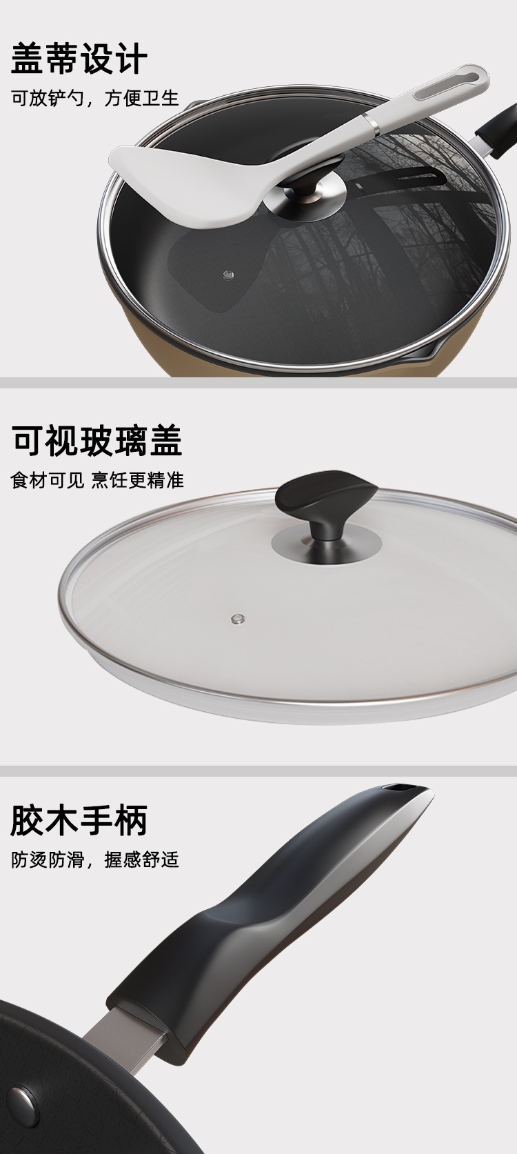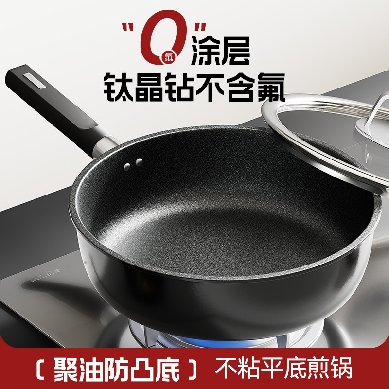 新款钛晶陶瓷不粘锅家用平底煎炒锅多功能牛排煎锅通用炉灶炒菜锅