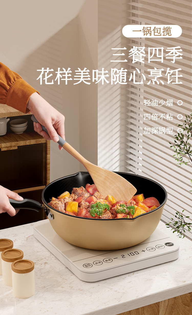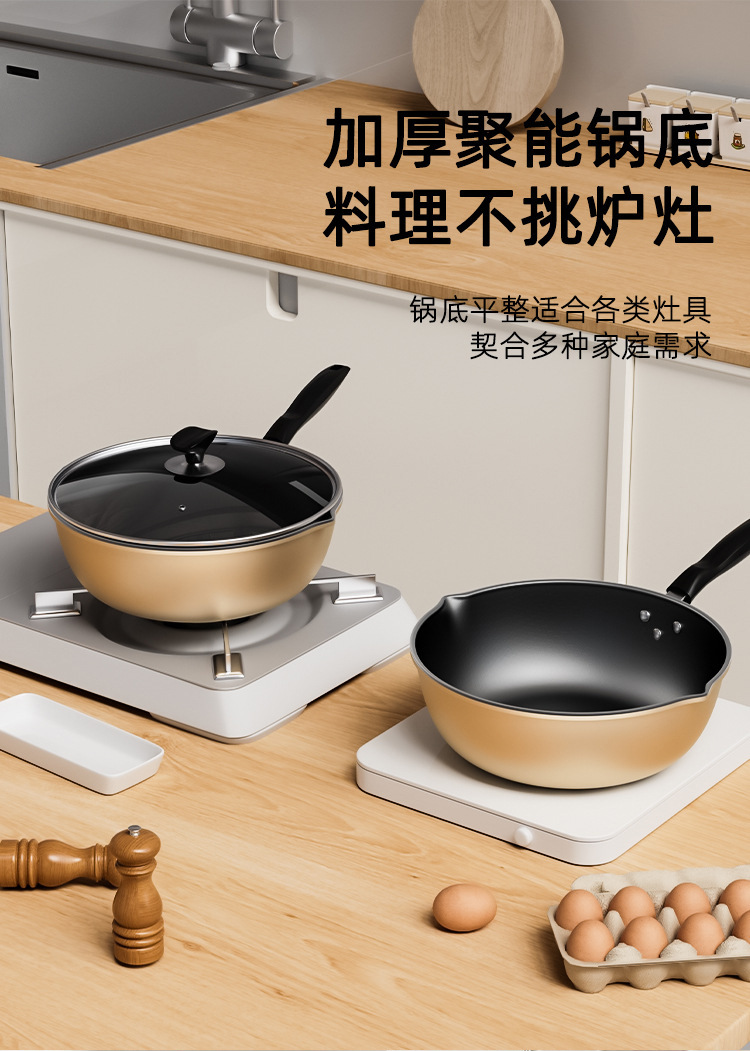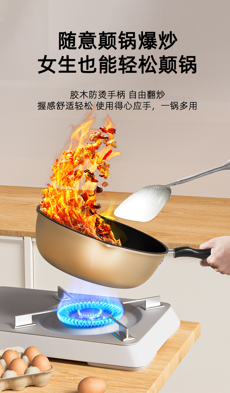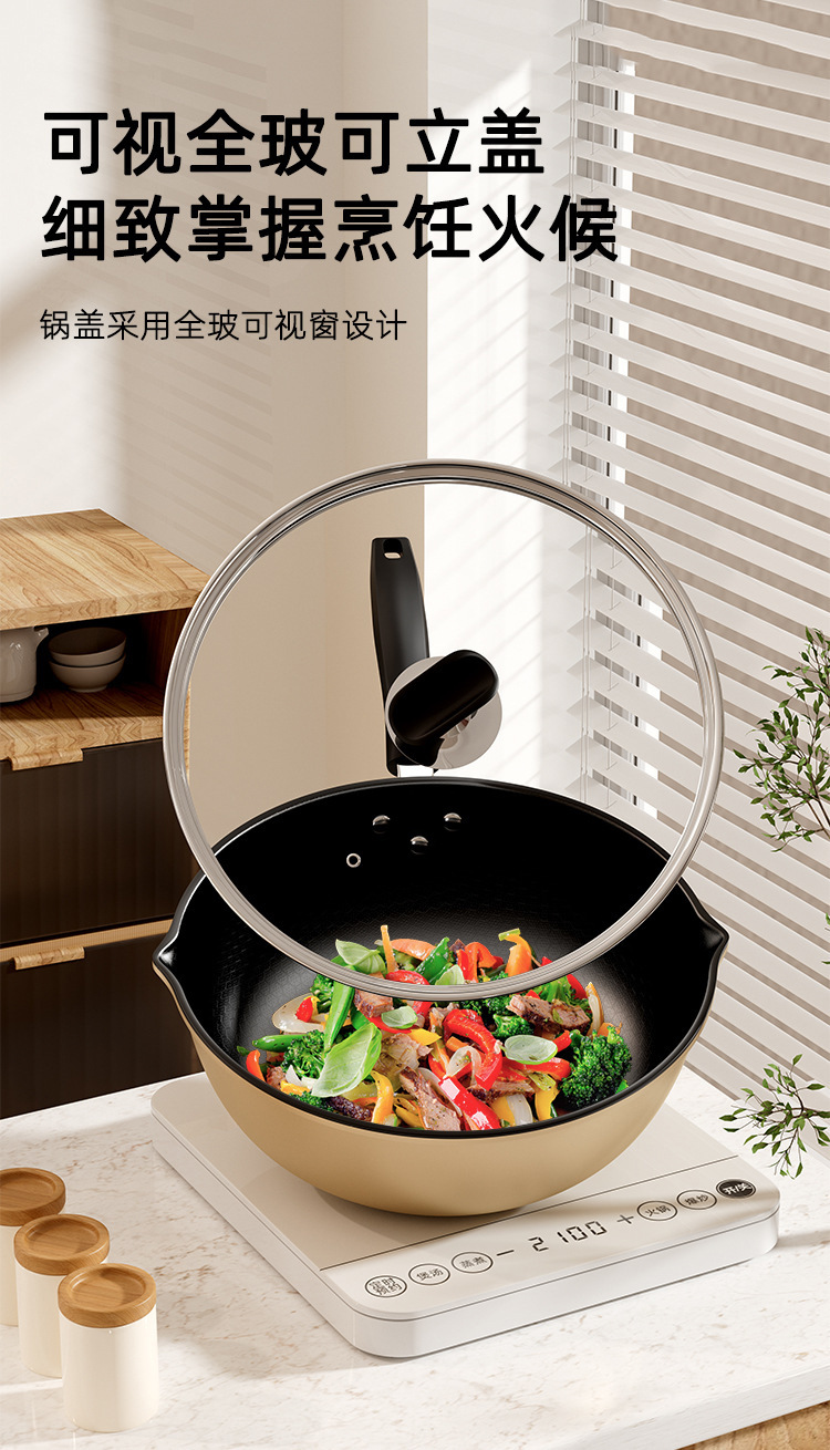 新款陶瓷釉炒锅加高平底煎炒锅家用0氟涂层不粘锅通用炉灶炒菜锅