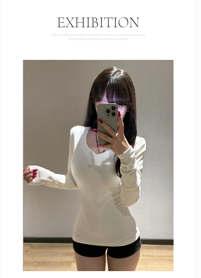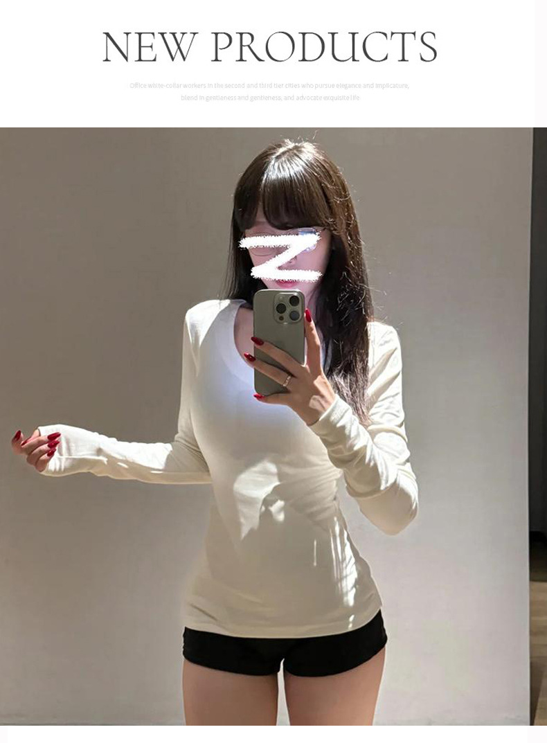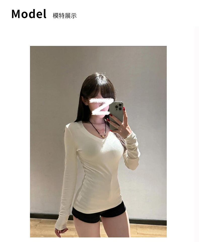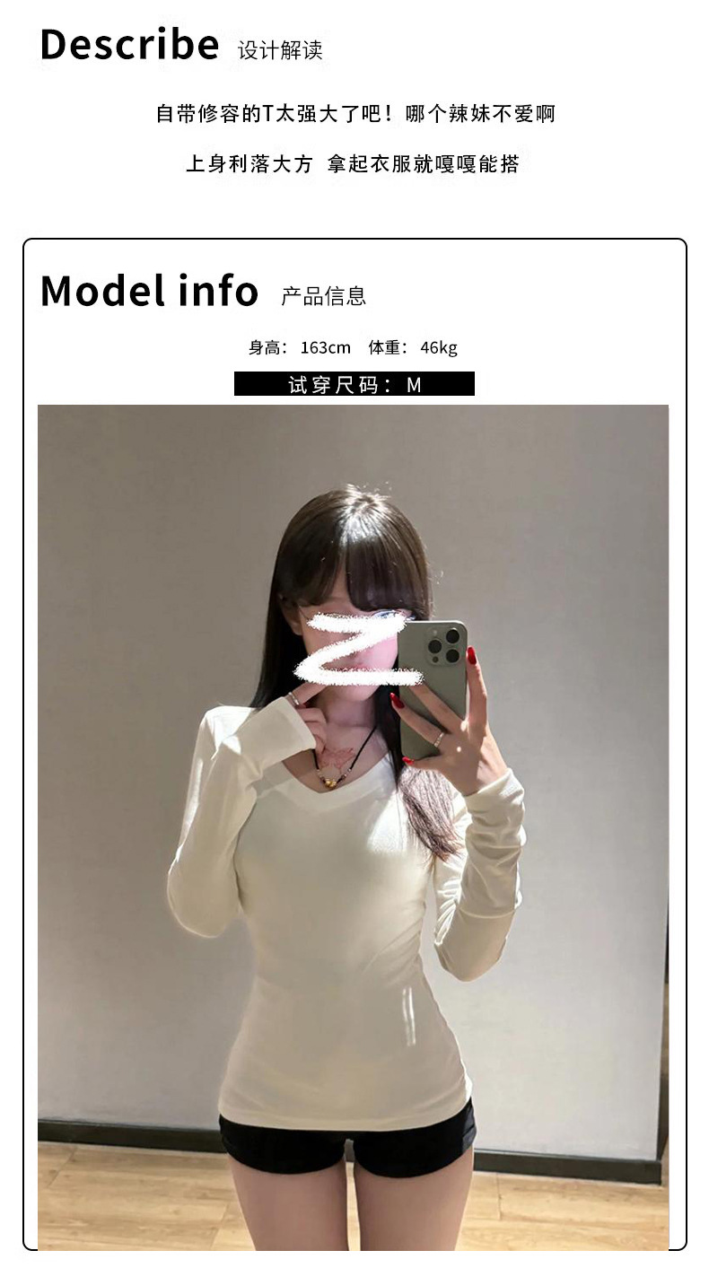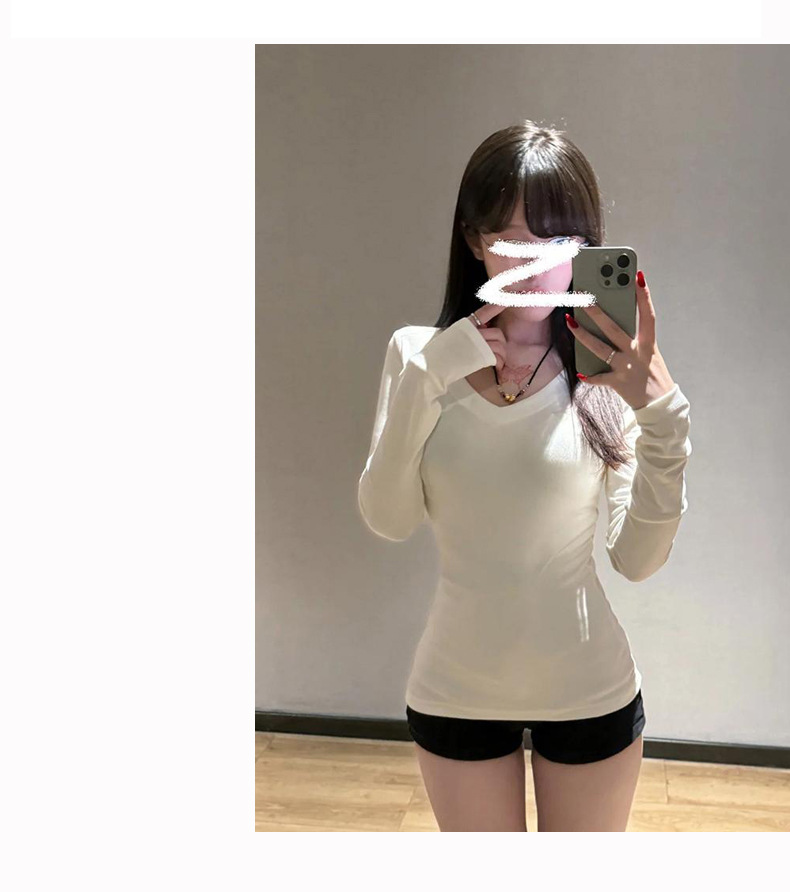現物スキムズアメリカ風ギャル秀気vネック正肩長袖tシャツモーデール肌に優しい質感のガードル