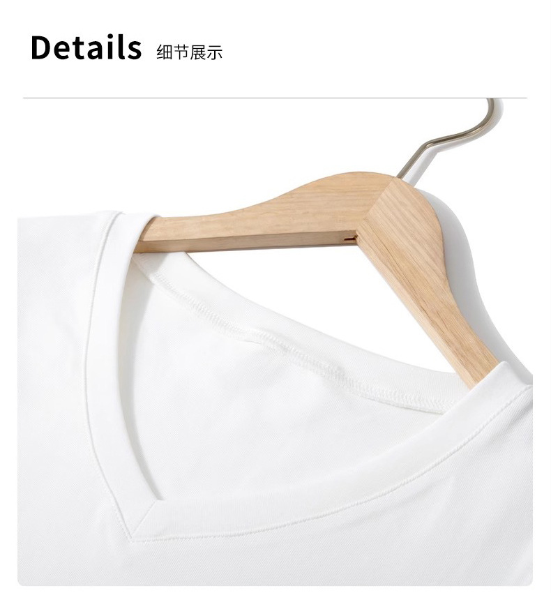 白の中に半袖のtシャツを掛けています。女性の夏2025新型シンプルな肩のvネックの底のシャツはスリムに見えます。