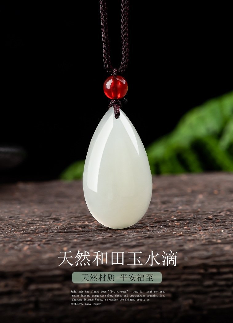 古い材料と田玉白玉水滴ペンダント正規品天然玉ネックレス気質男女モデルペンダント高級卸売
