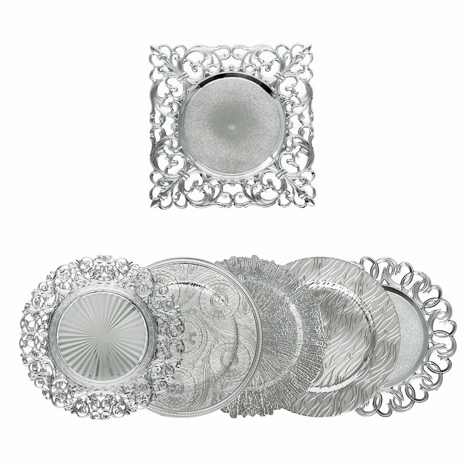跨境外贸批发charger plates欧式装饰婚礼金色银色塑料盘西餐垫盘