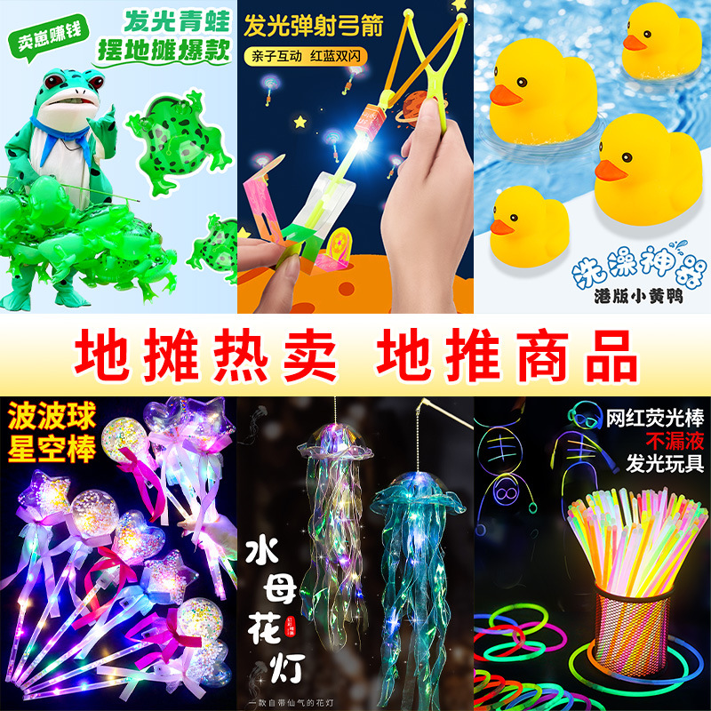 夜市の露店は小さい商品の輪を押して露店を出してネットの赤い子供の贈り物の発光の小さいおもちゃを卸売りします。