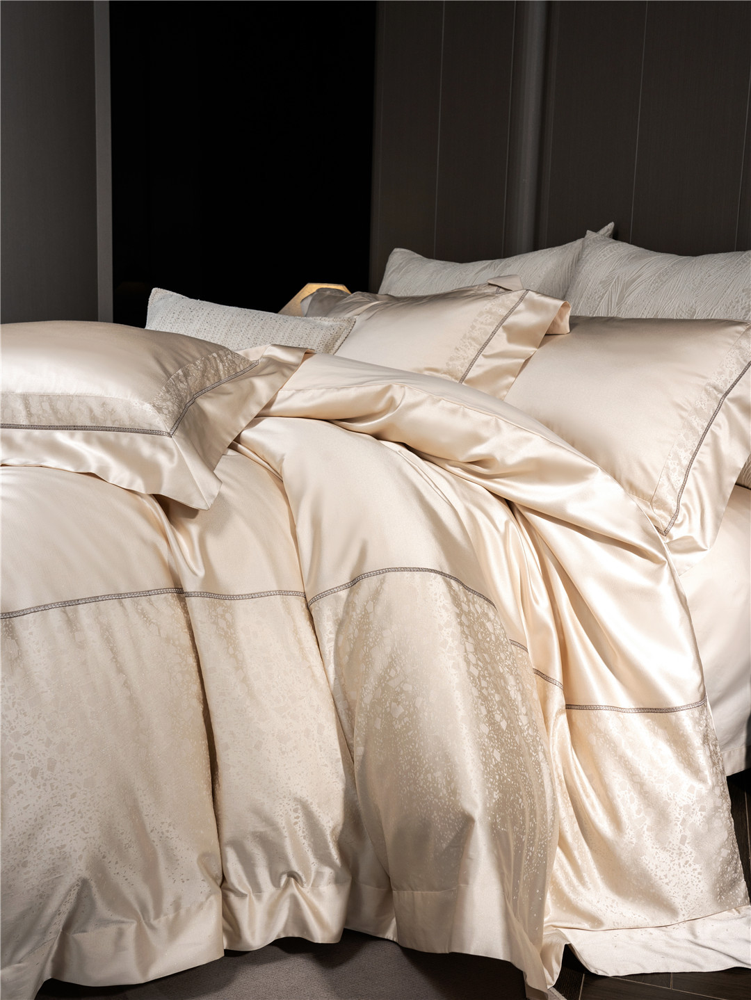 🧶超柔高精密轻奢面料,天花板级别的JI致丝滑,既有真丝的光泽,又有棉的柔软透气,高贵大气而不失舒适。高精密珠光丝质,诠释轻奢时尚格调🥂未经过雕琢只留着原生美感,好的品质不止于一面🍃因为其高密高支,不光对纺织技艺高,用料成本也高,折射出来的珍珠般的光泽感,颜色非常柔美及纯正,能使空间有很好的轻灵感,超柔高精密是面料中的爱马仕,JI致的体验