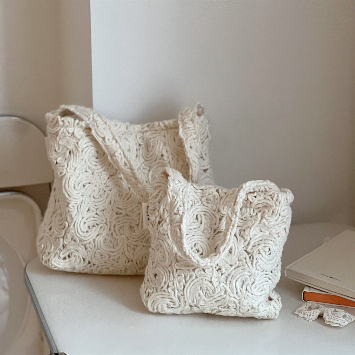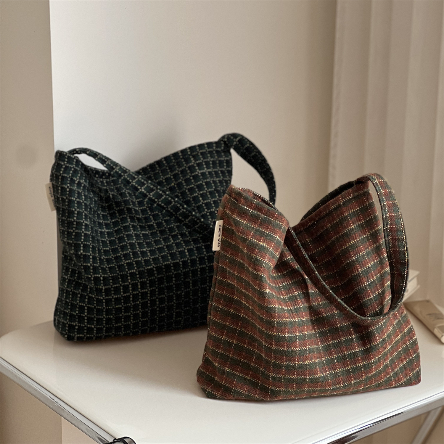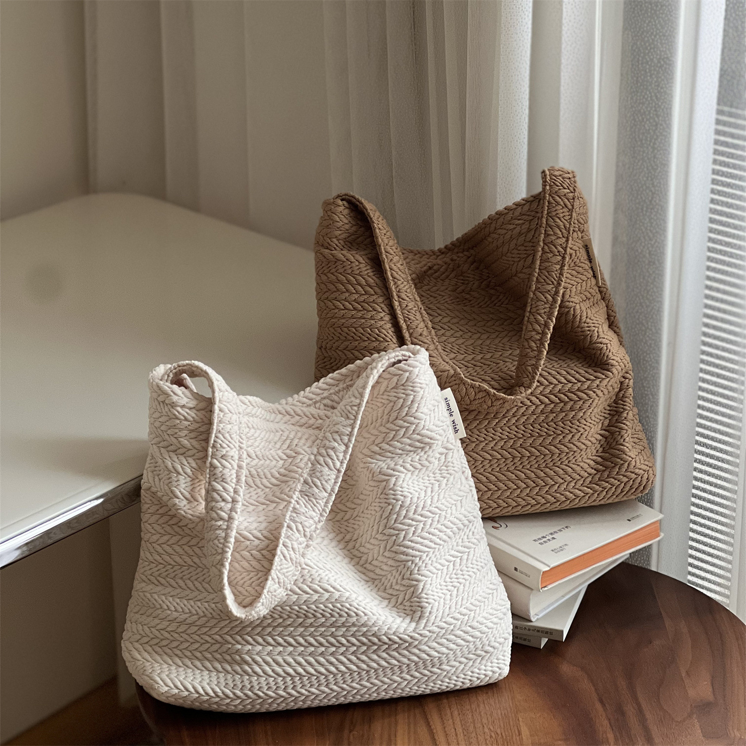 简约素色黑白灰彩点肌理感粗纺布包腋下包 单肩挎包