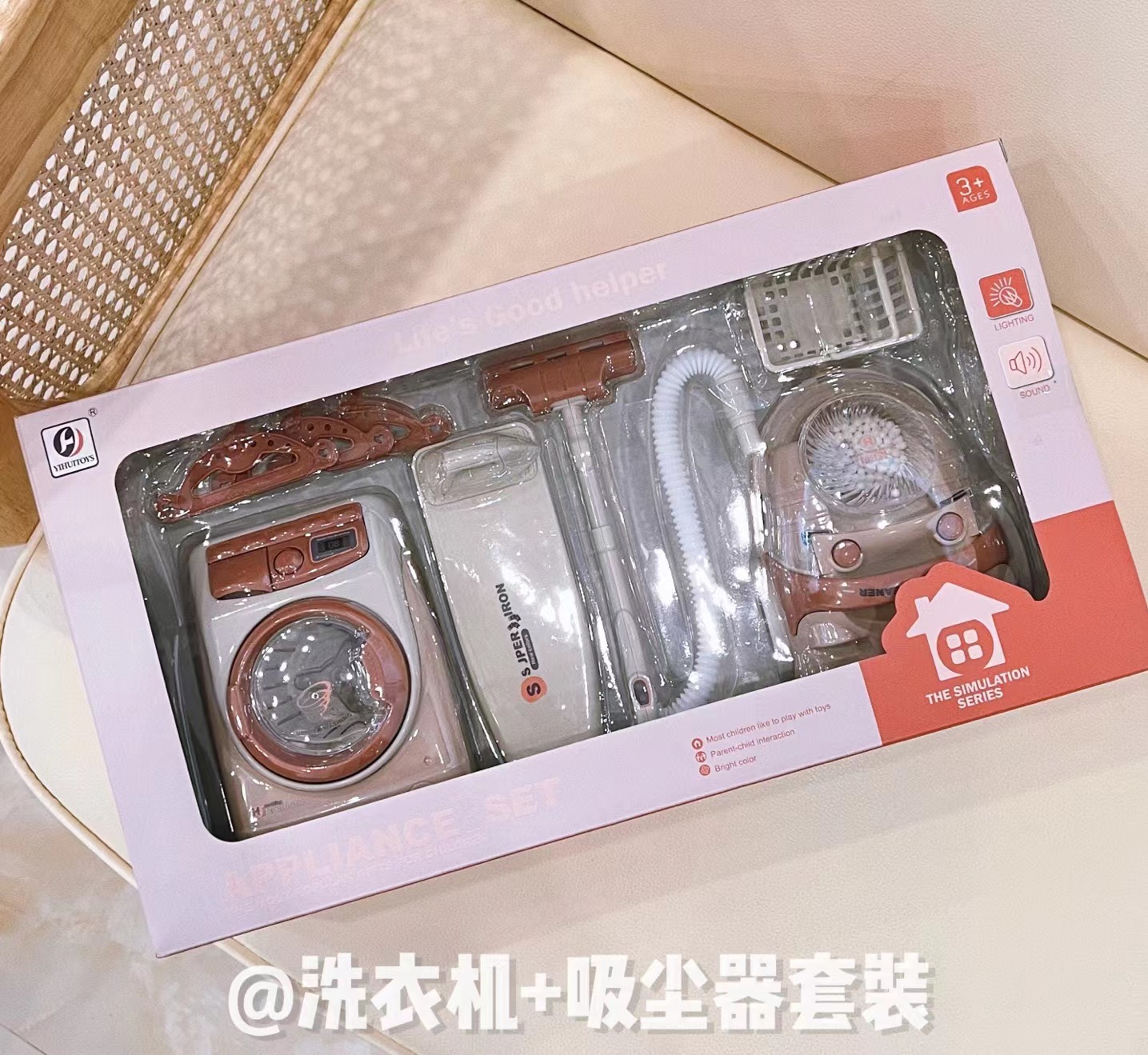 国境を越えた子供のままごとの小さい家電の台所のおもちゃの男の子の女の子は電動の洗濯機の小さいかまどのセットをシミュレーションします。