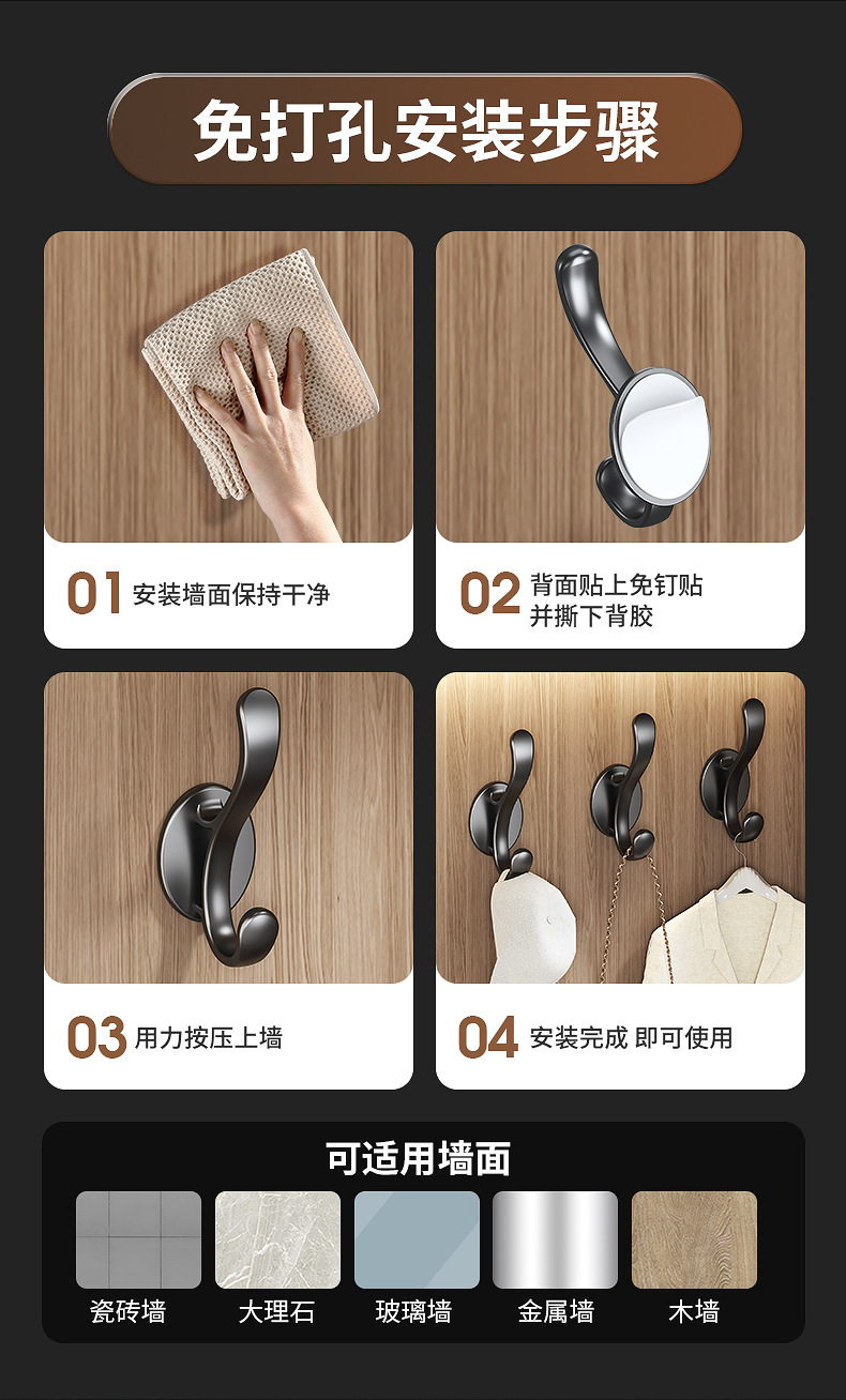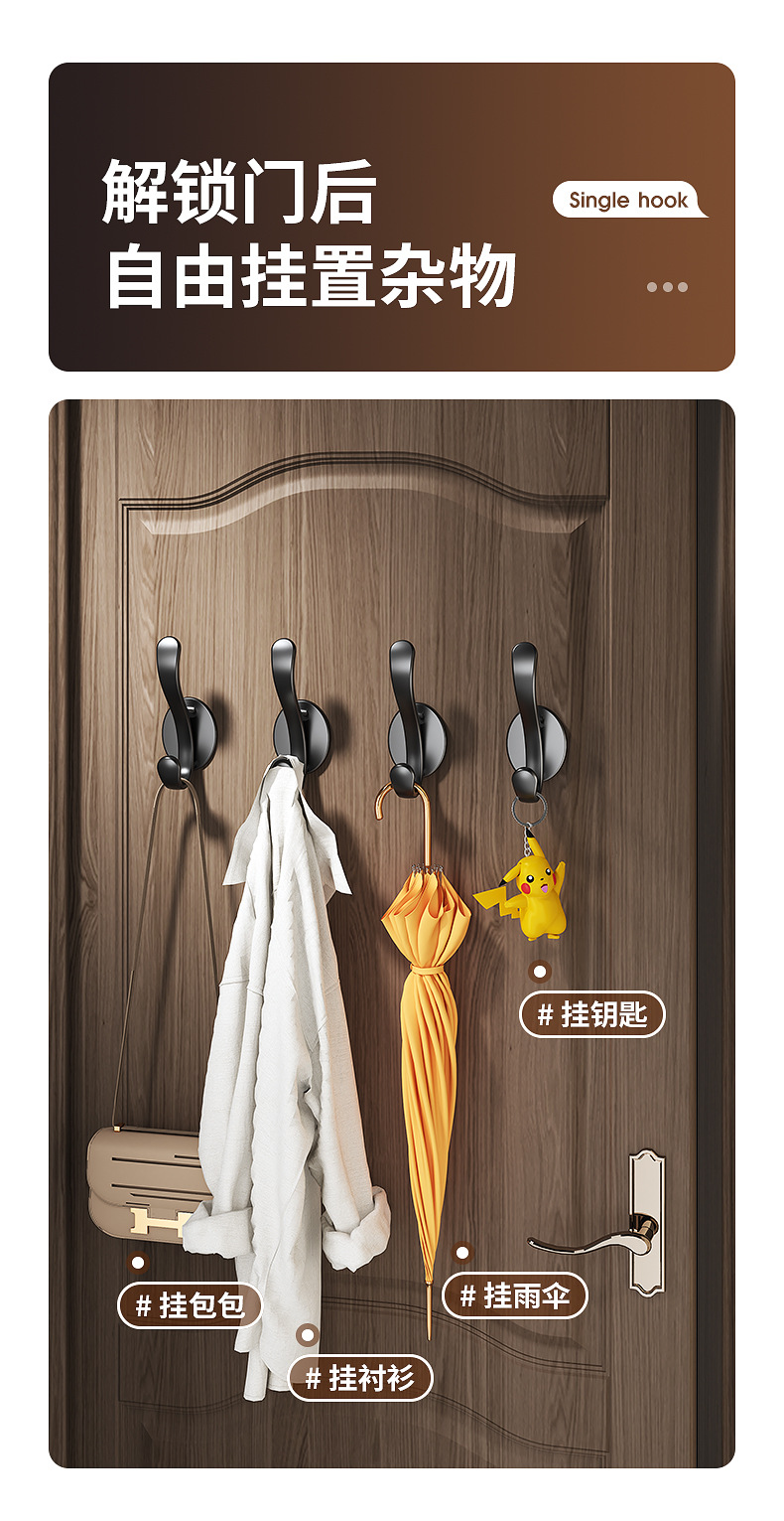衣钩免打孔鞋柜衣柜衣服门后挂钩壁挂墙壁金属衣帽钩玄关挂衣钩