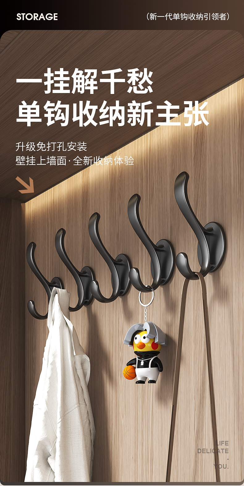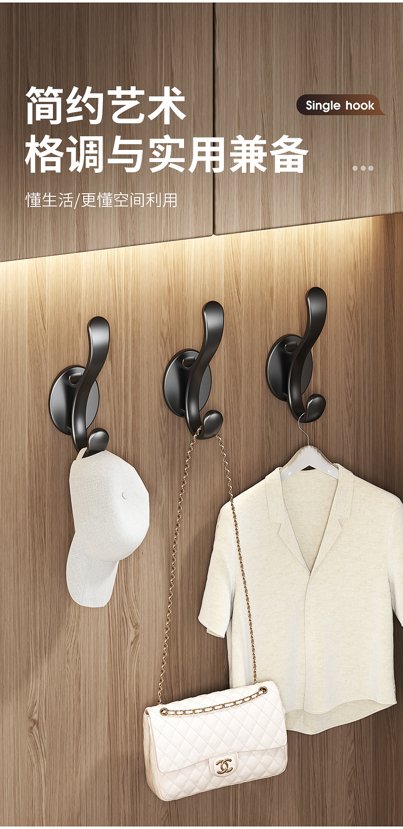 轻奢挂衣钩打孔固定墙壁衣服衣柜挂衣架衣钩进门玄关单个简约挂钩