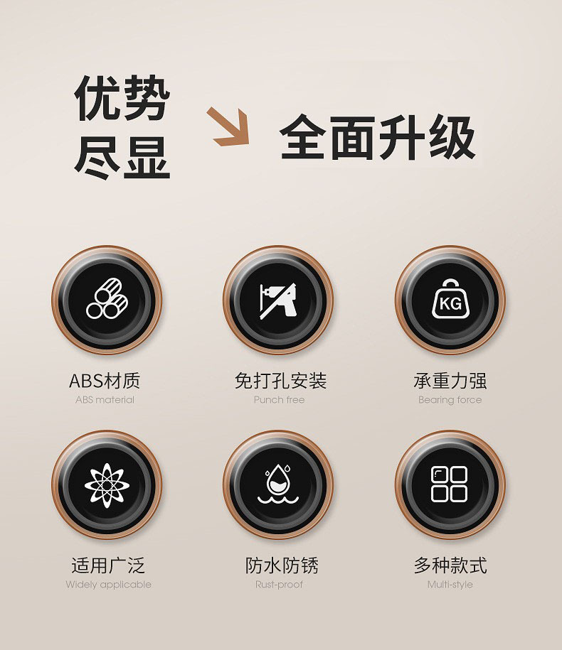 穴の高さを開けないで、ゴムの扉をフックして、服の棚の壁の荷重を貼り付けます。トイレはフックの壁掛けを収納します。