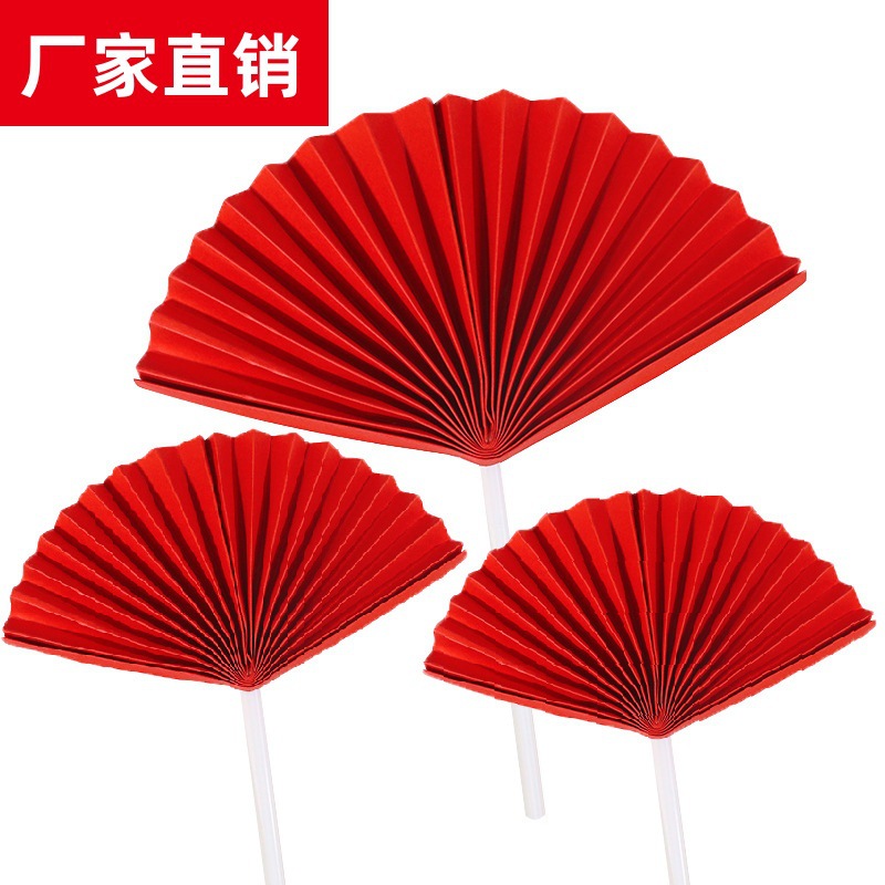 赤い扇子ケーキデコレーションインサート赤い半円扇子中国風誕生日ベーキングインサートデコレーション