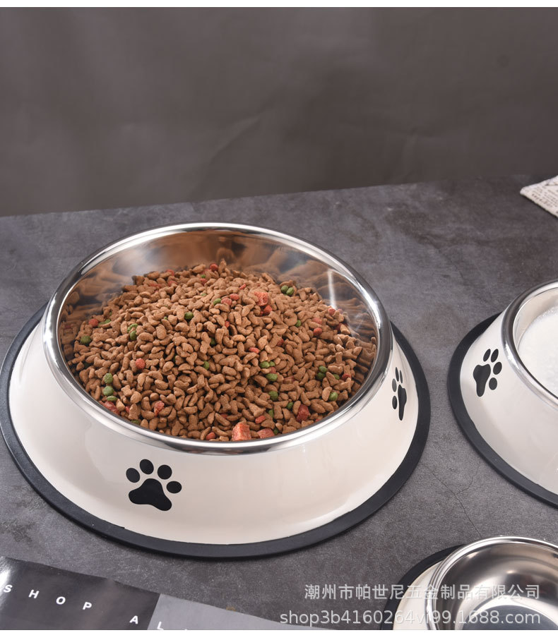 ステンレス製の足跡模様ペットボウル、噛みつき防止、転倒防止、静音、落下防止、洗いやすい、滑り止め付きの猫・犬用食器