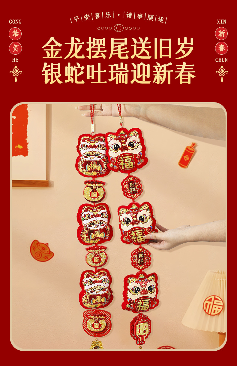 2025年新年装飾蛇年旧正月客間テレビ背景壁ストラップ入戸門正月祝い小掛け飾り