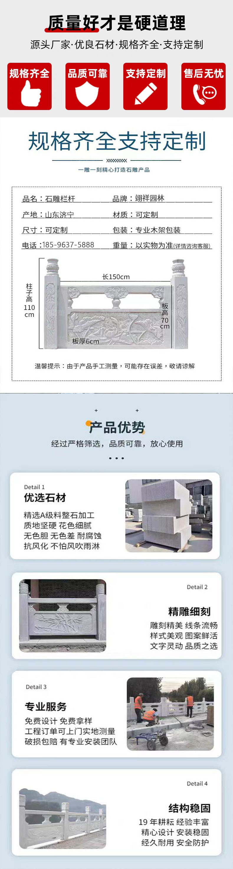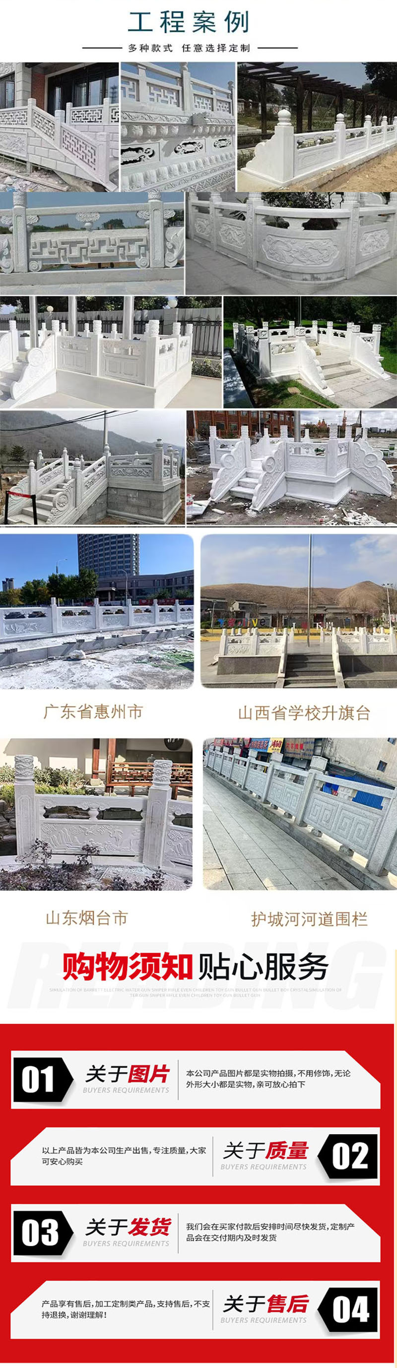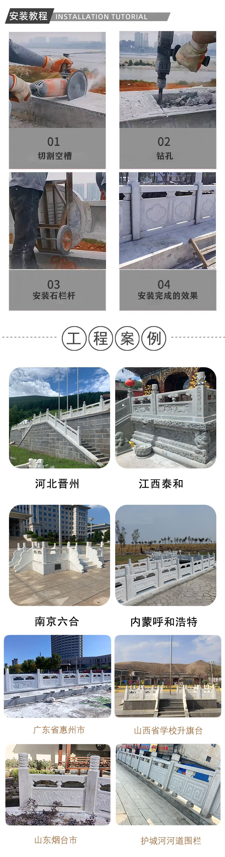 漢白玉石欄干彫刻メーカー花崗岩石彫刻欄干板景観河道石欄干石ガードレール