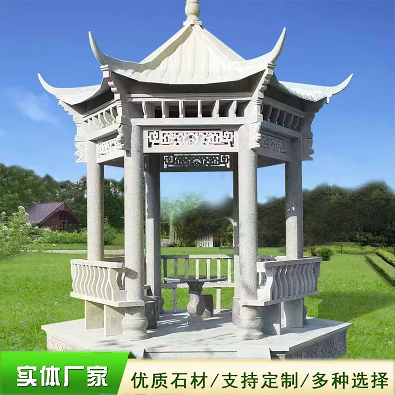 庭園のレジャーの石像のあずまやの庭の別荘は中国式の石像のあずまやの花崗岩の六角形の石像のあずまやを飾ります。