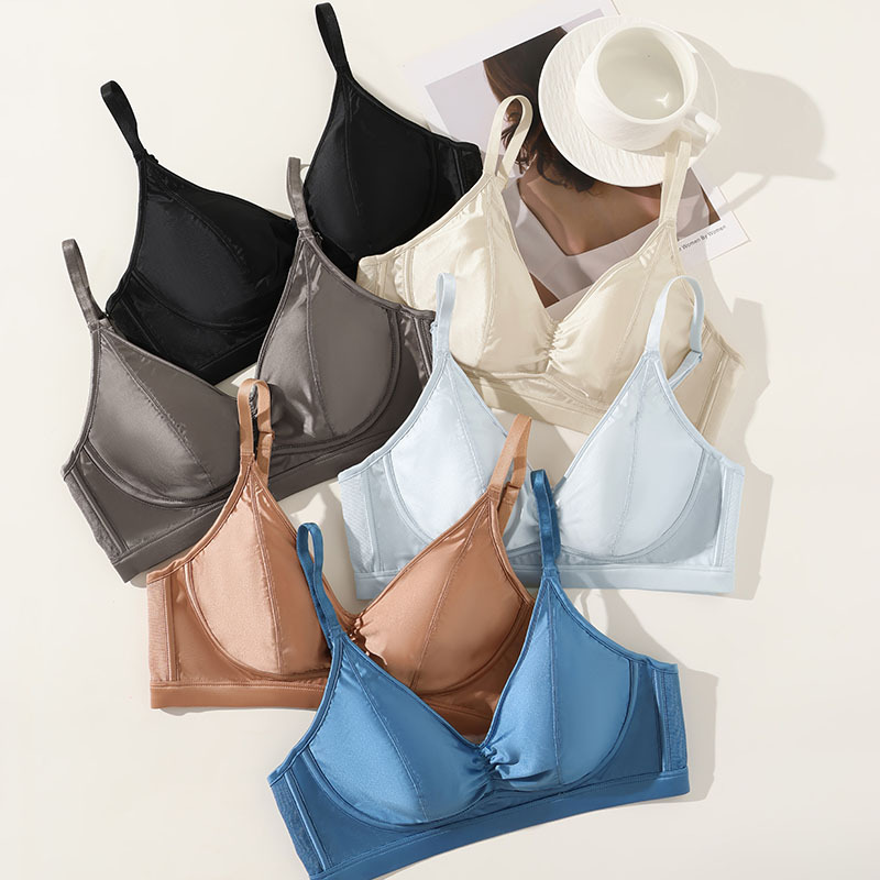 ライト高級フレンチサテンマルベリーシルク肌栄養下着ライブドロップシッピング通気性と軽量ウサギ耳カップブラジャー外国貿易クロスボーダー