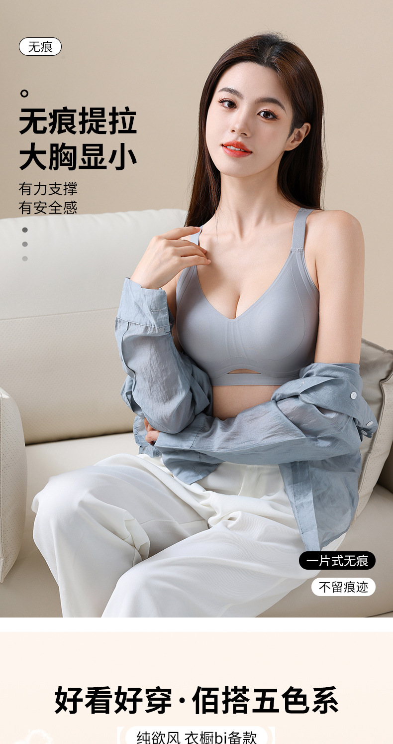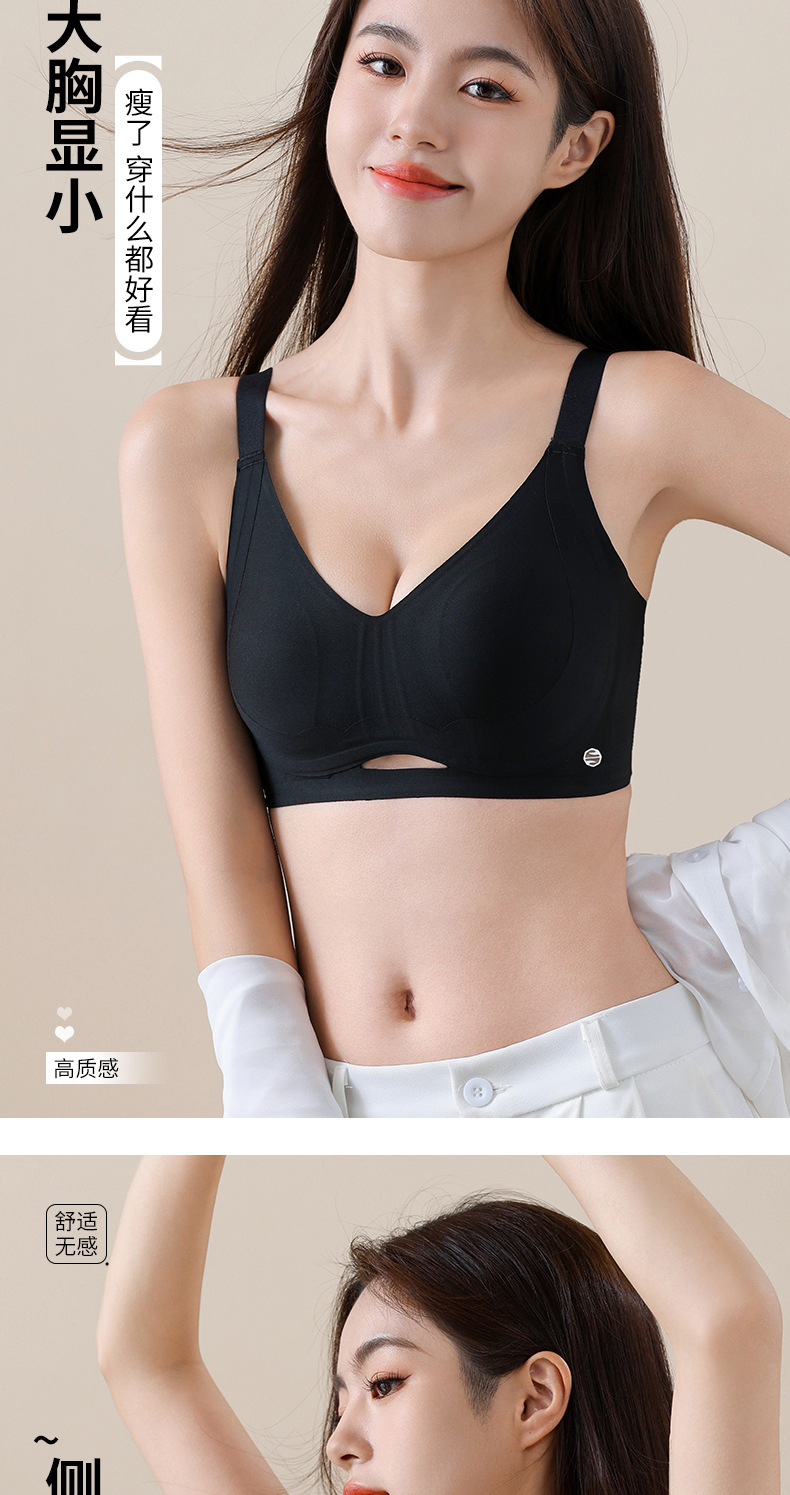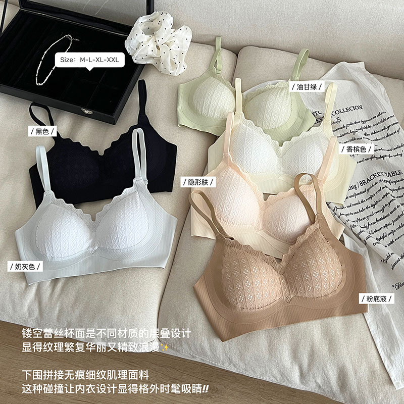 秋冬森系提拉薄杯bra镂空内衣直播代发无痕大胸显小文胸外贸跨境
