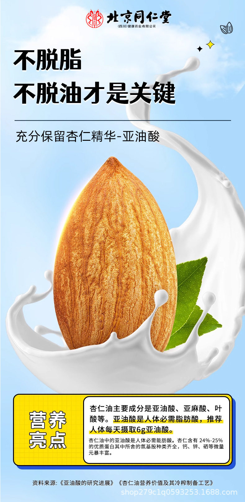 南京同仁堂アーモンド七白飲代食栄養朝食抽出即食沖飲純アーモンド粉穀物純正品