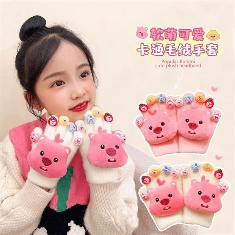 玉桂犬のクロミ男女子供の中で半分の指の手袋の秋冬のタイプの子供の手袋の保温は5本の指を分けて手袋を覆います。