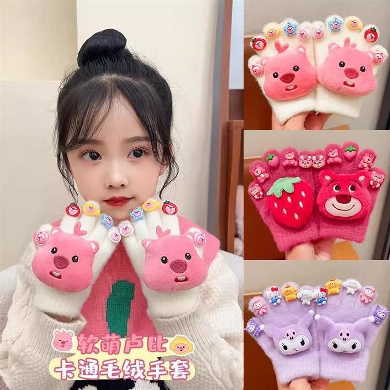 サンリオ児童手袋2024冬の新女の子5-12歳のクーロミ5本指セットとベルベット保温分指