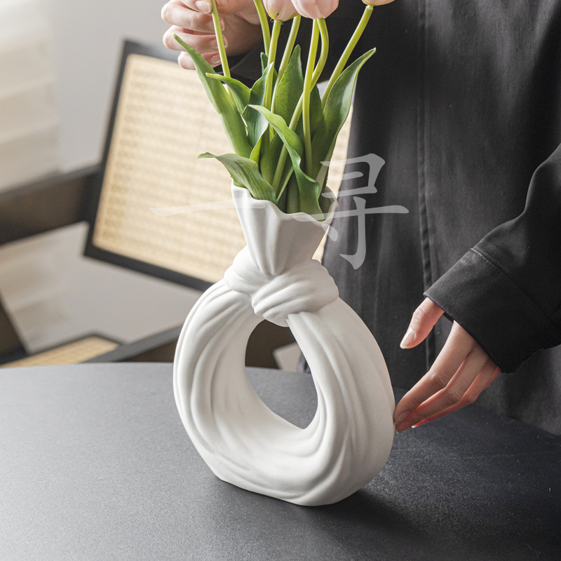 北欧ins陶磁器花瓶越境花瓶創意蝶結び花瓶見本室民宿装飾置物