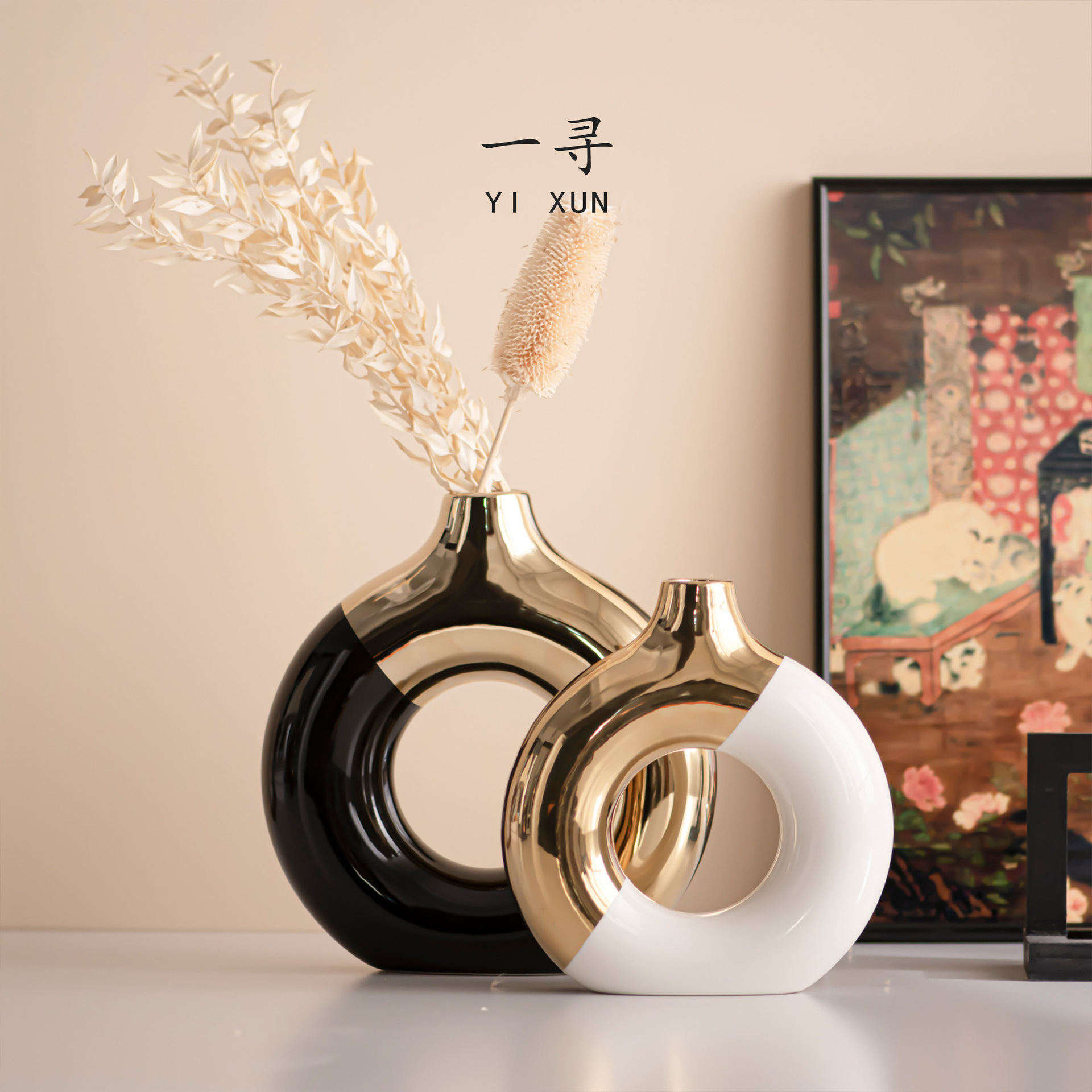 クロスボーダー陶磁器花瓶北欧置物ins風金色花瓶生け花高級感家庭ソフト用品