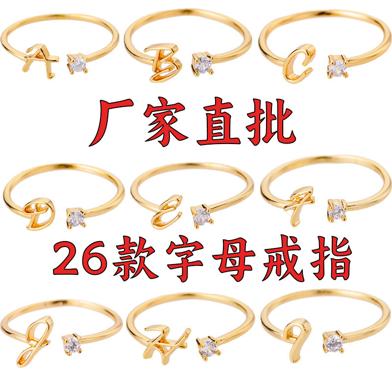 速売通アルファベット指輪26文字az金色18k金メッキ中性指輪創意指リング卸売りアクセサリー