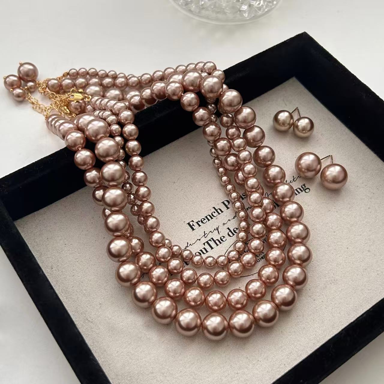 女性用シャンパンパールネックレス、軽くて豪華なニッチレトロな気質、秋冬のセーターチェーン、雰囲気のある高級ネックレスアクセサリー