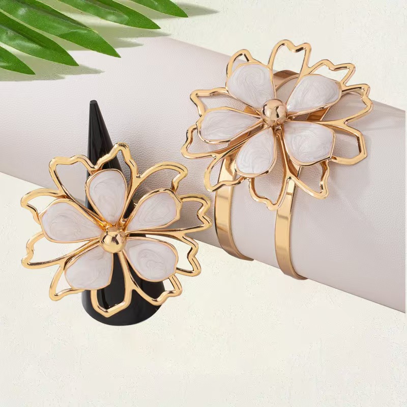 彩色甜美小清新花朵手镯戒指套装简约设计感镂空双层花瓣手饰套装