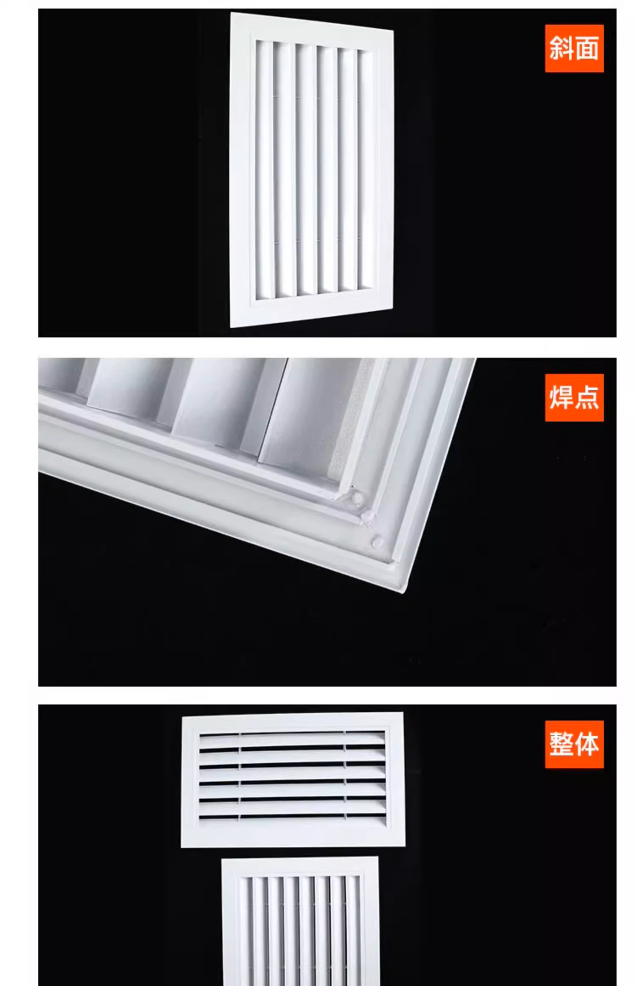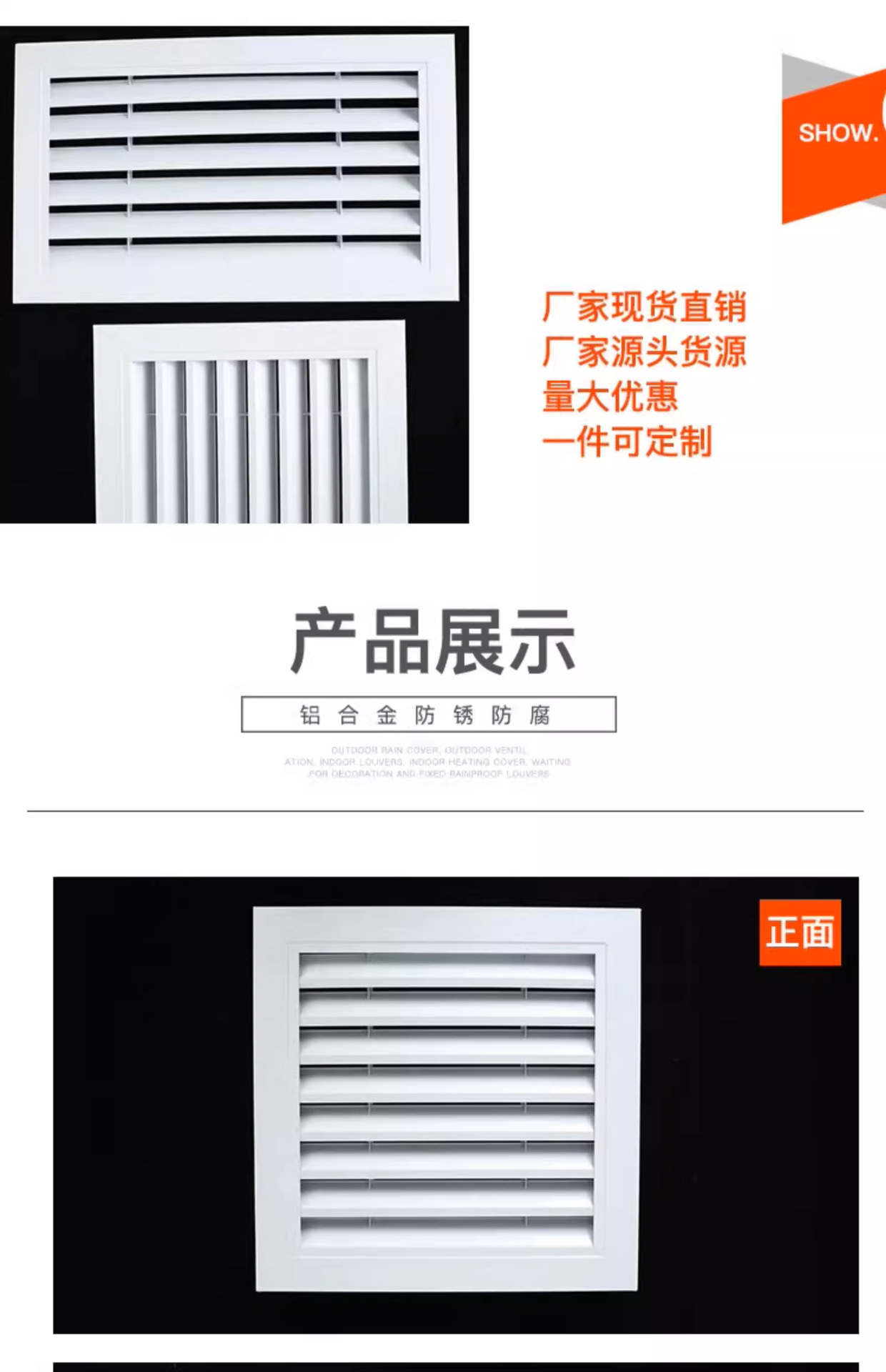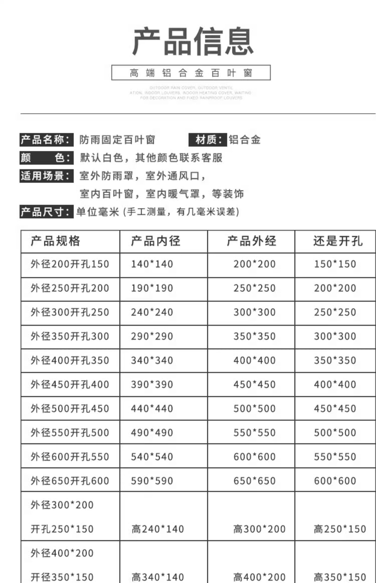 此款百叶,为全铝合金设计,所以可以应对很多复杂环境情况,确保不生锈不腐蚀!室内,室外,潮湿,高温,低温,风雪,沙尘等情况下,都能很好的维持原有的物理特性和化学性质不变!