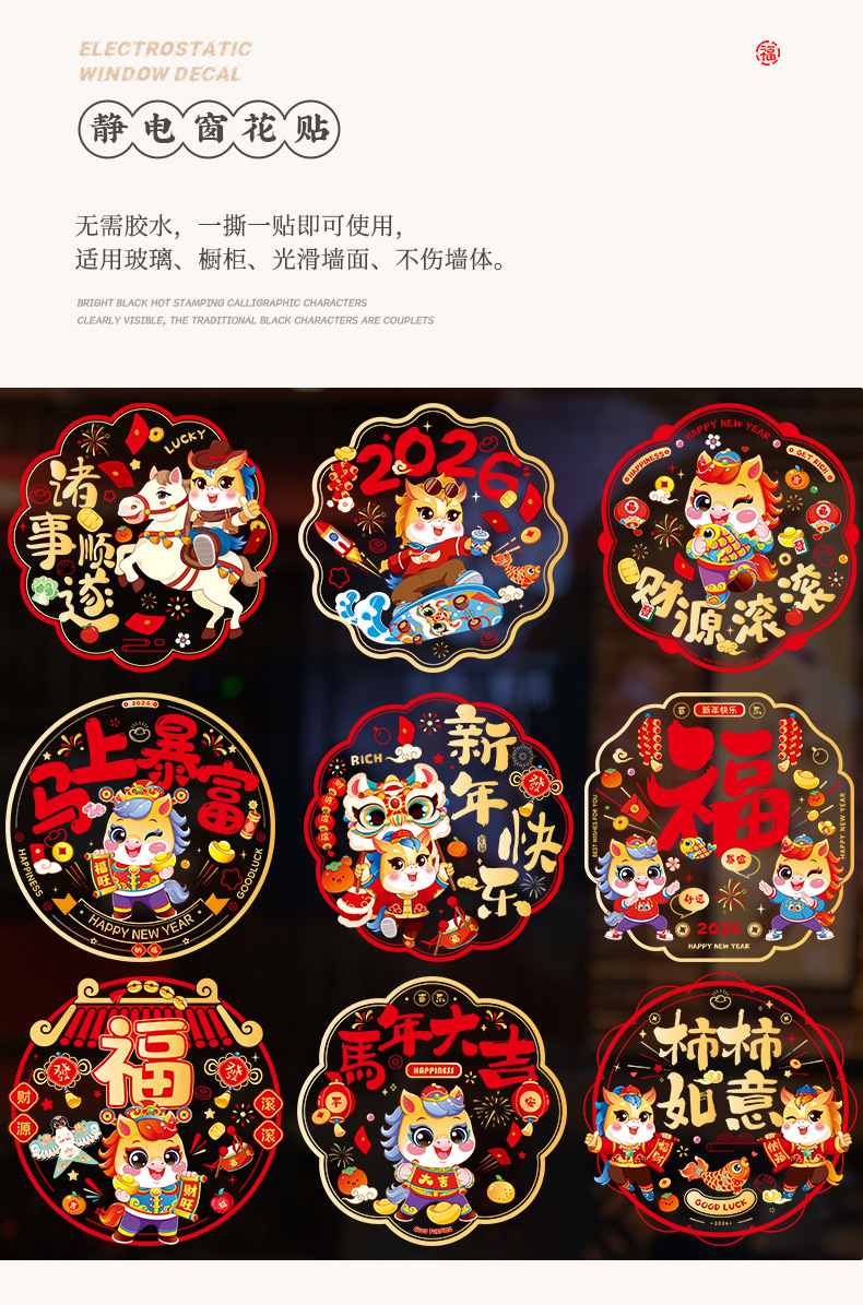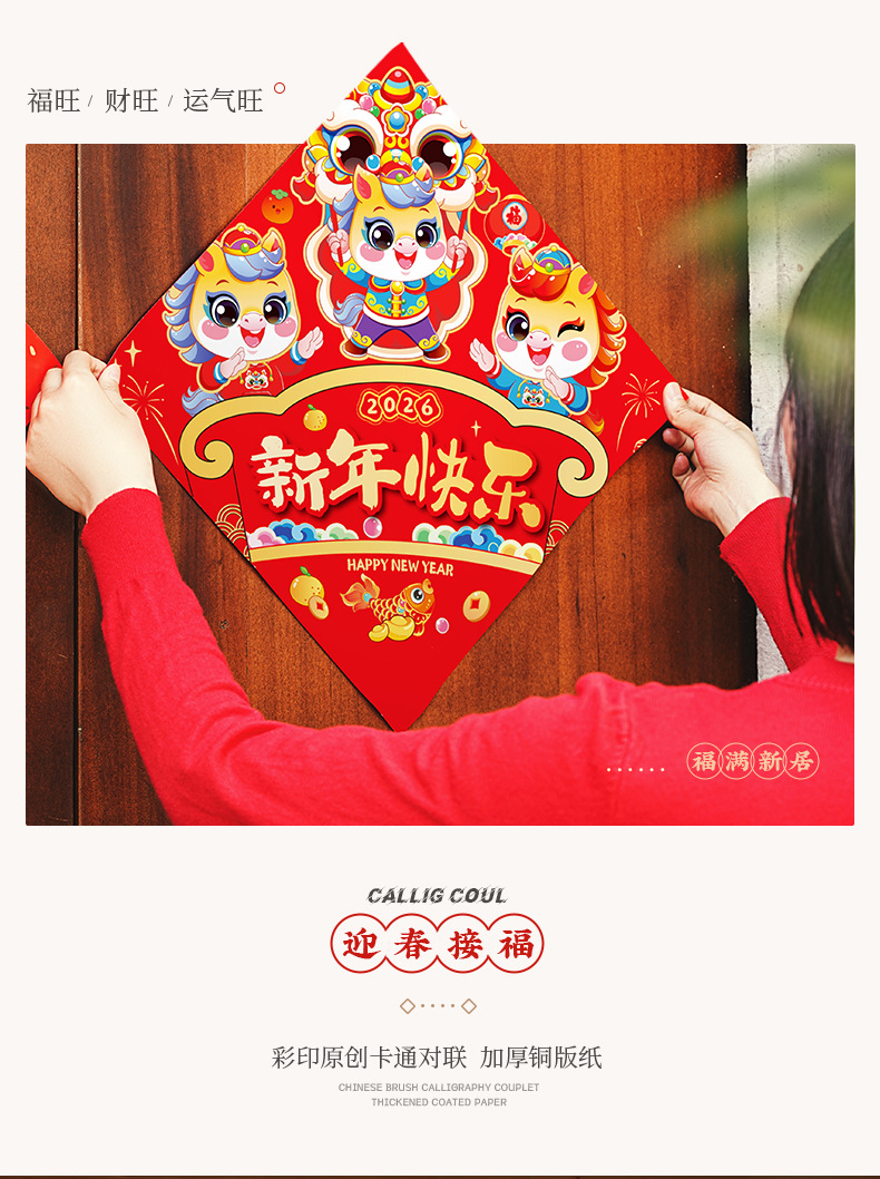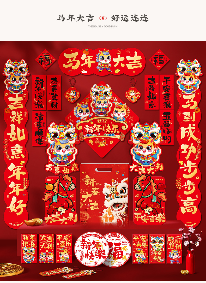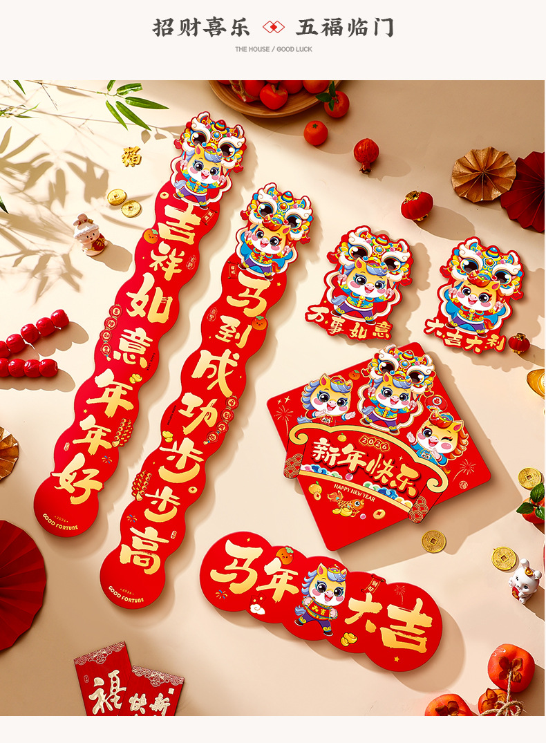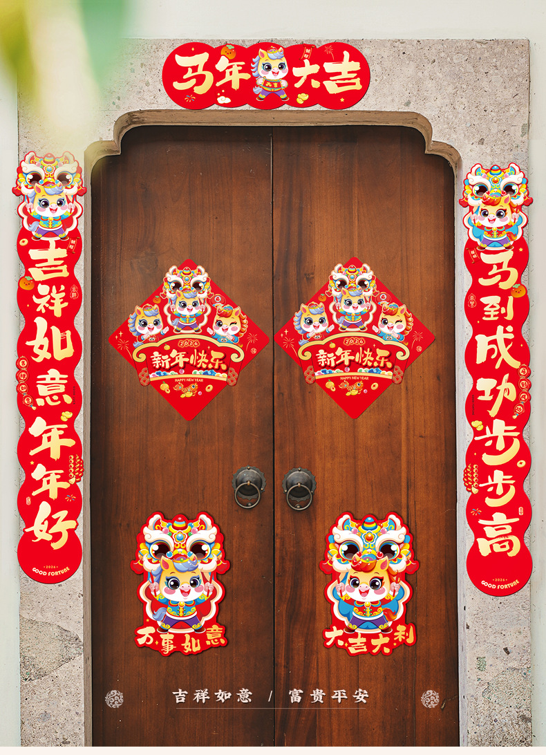 2026年馬年新年対聯大特価セット、春節対聯セット、新作春節干支玄関ドアステッカー、卸売