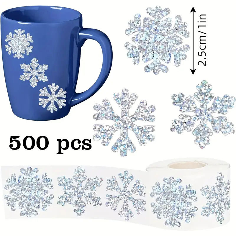 500贴烫银透明圣诞雪花涂鸦贴纸1英寸圣诞节新年礼物包装diy装饰