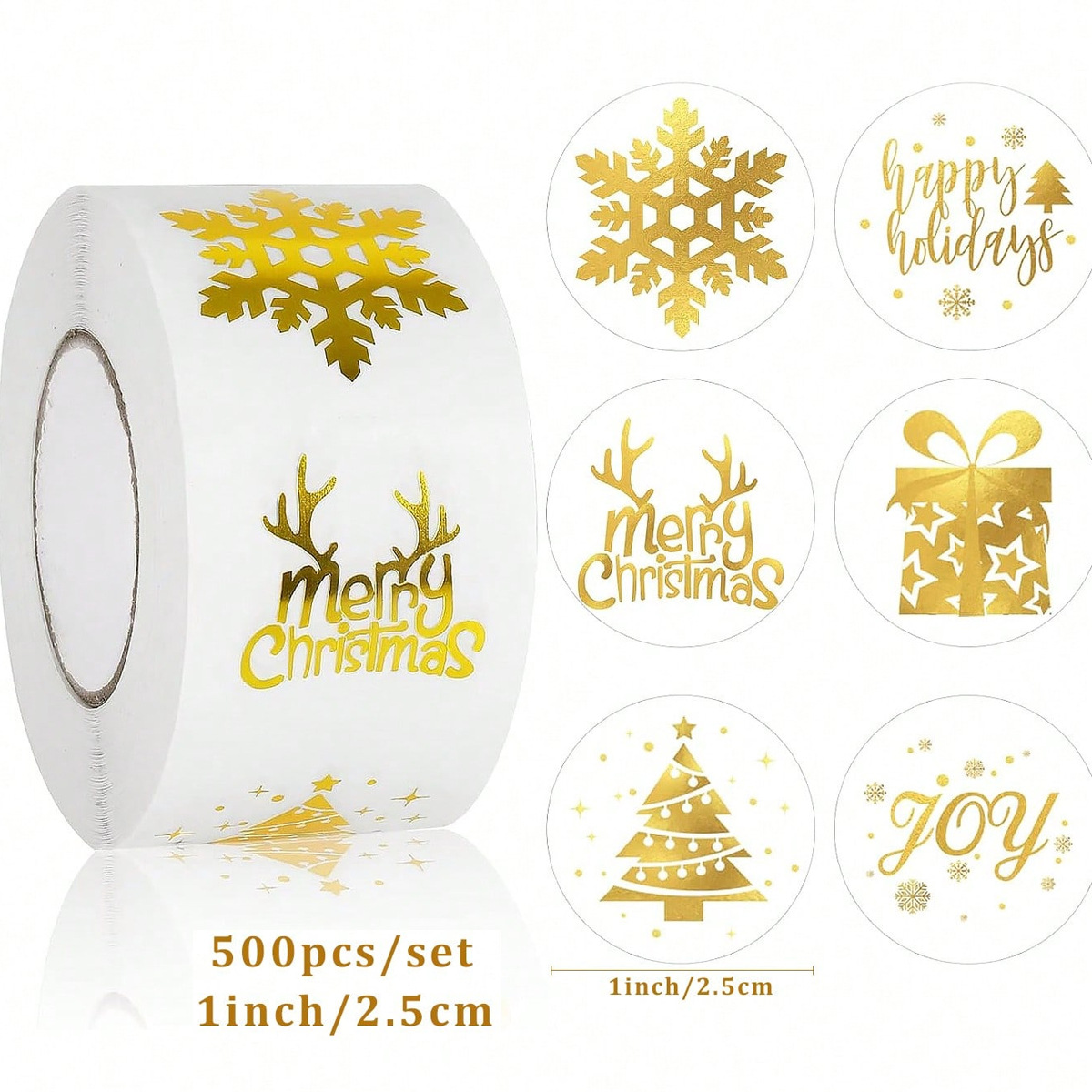 跨境圣诞贴纸卷装500贴圆形礼物装饰封口贴不干胶包装圆贴标签纸