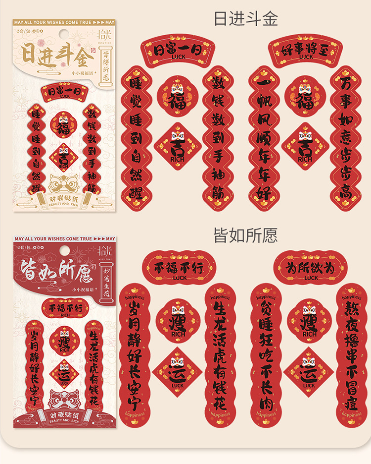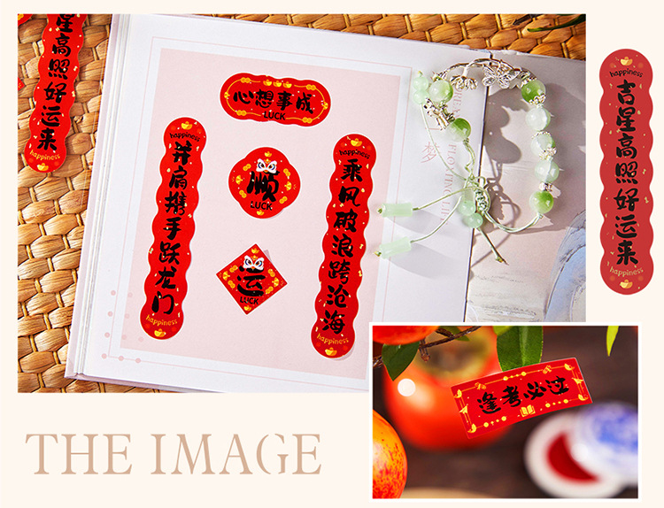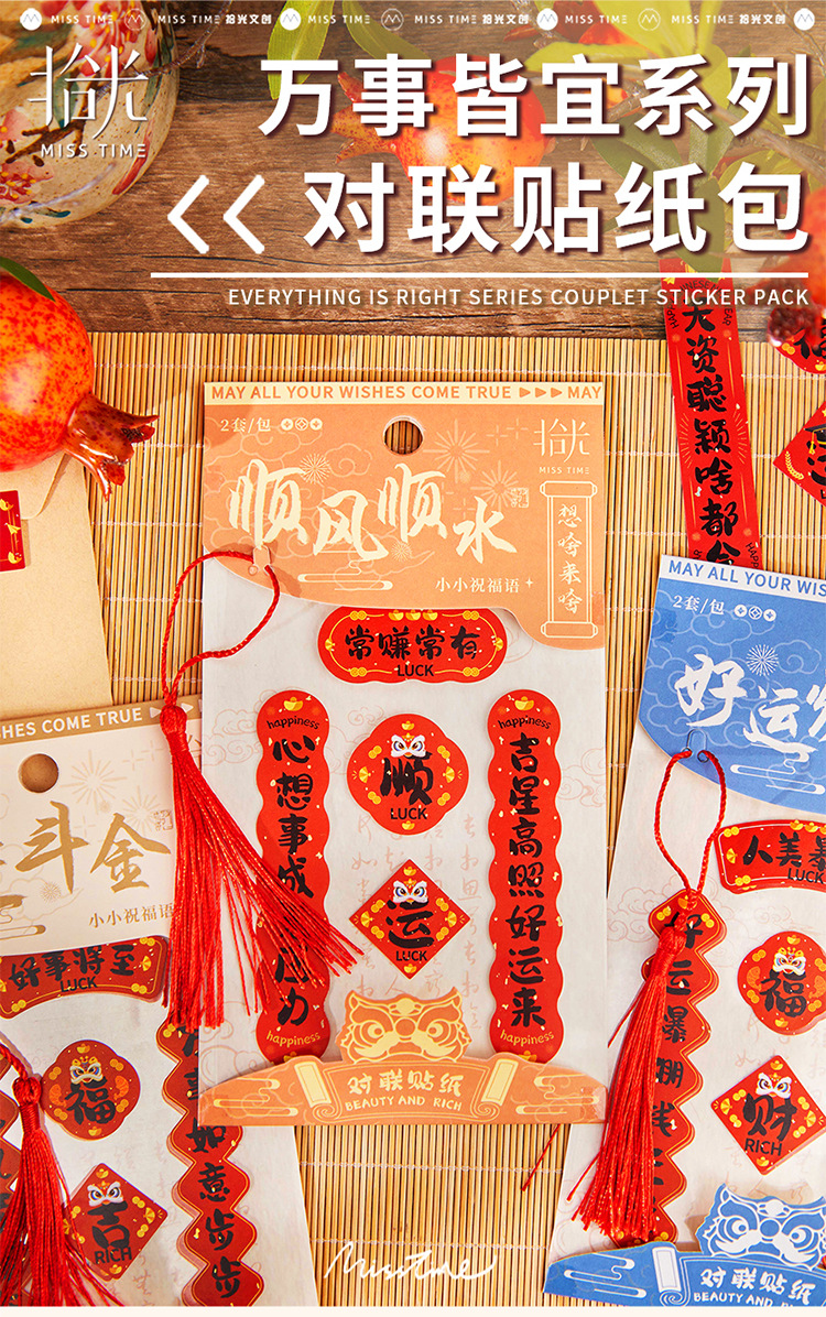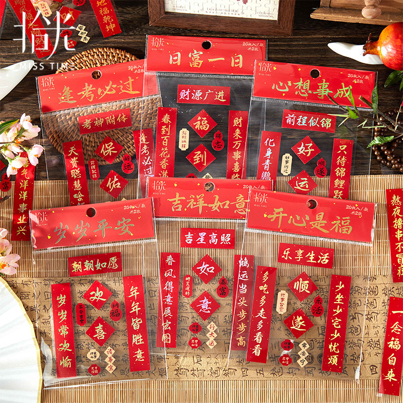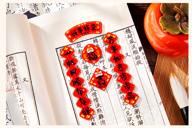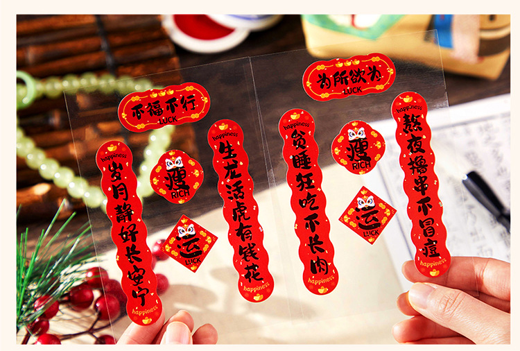 新年铜版纸贴纸包迷你小对联烫金手帐拼贴装饰素材DIY贴画 40枚入