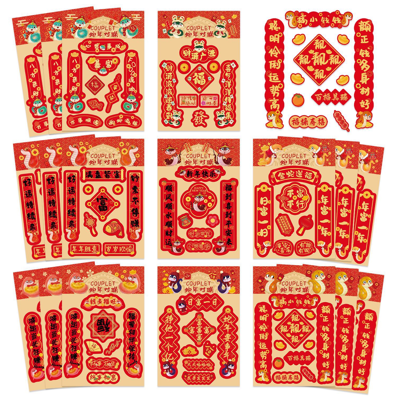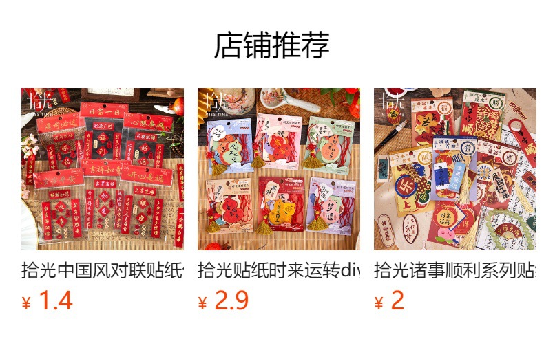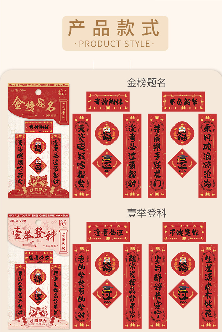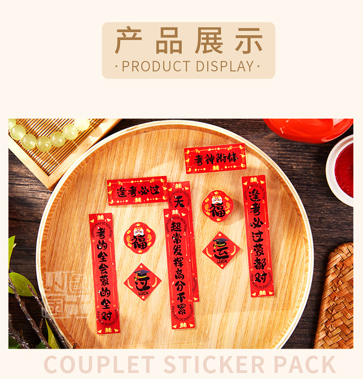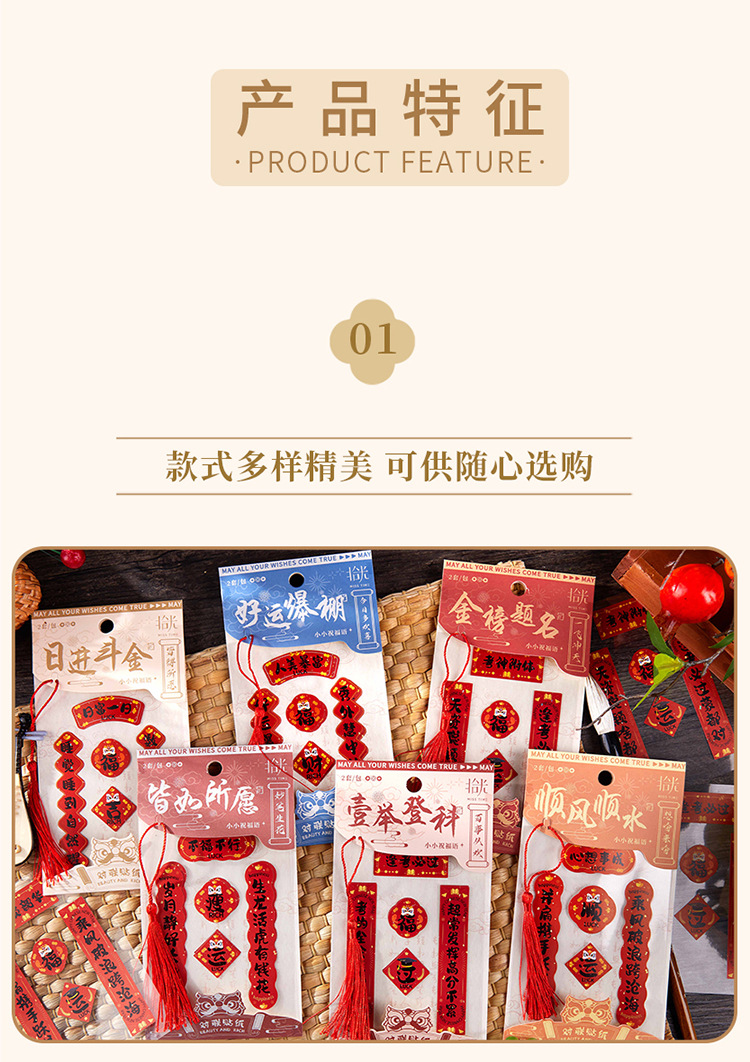 新年铜版纸贴纸包迷你小对联烫金手帐拼贴装饰素材DIY贴画 40枚入