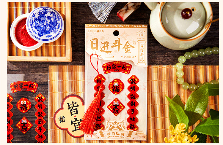 光を拾う国風対聯シールは日進闘金シリーズの中国式祝福手帳コップ携帯電話装飾シールを包む
