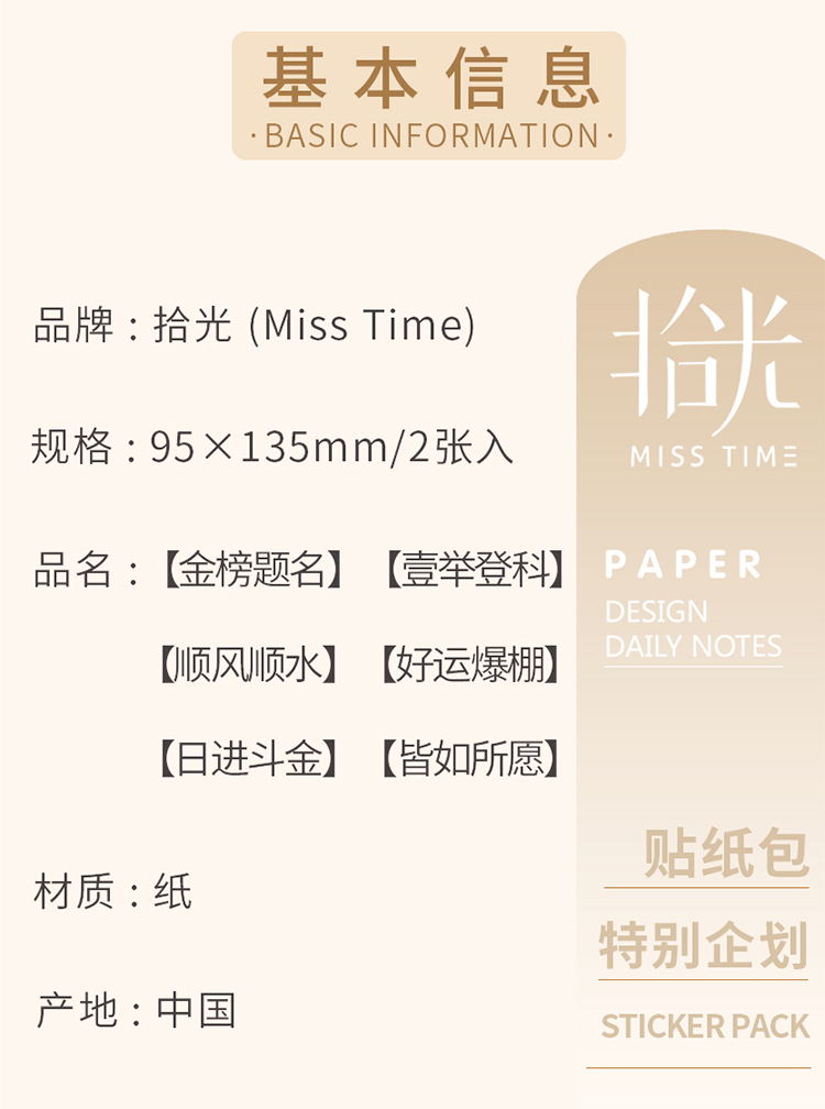 ライトピッキングステッカー、タイムランディング、DIYインスピレーション、着陸、祝福ペンダント、テキスト、文化的および創造的なハンドブック装飾素材パッケージ
