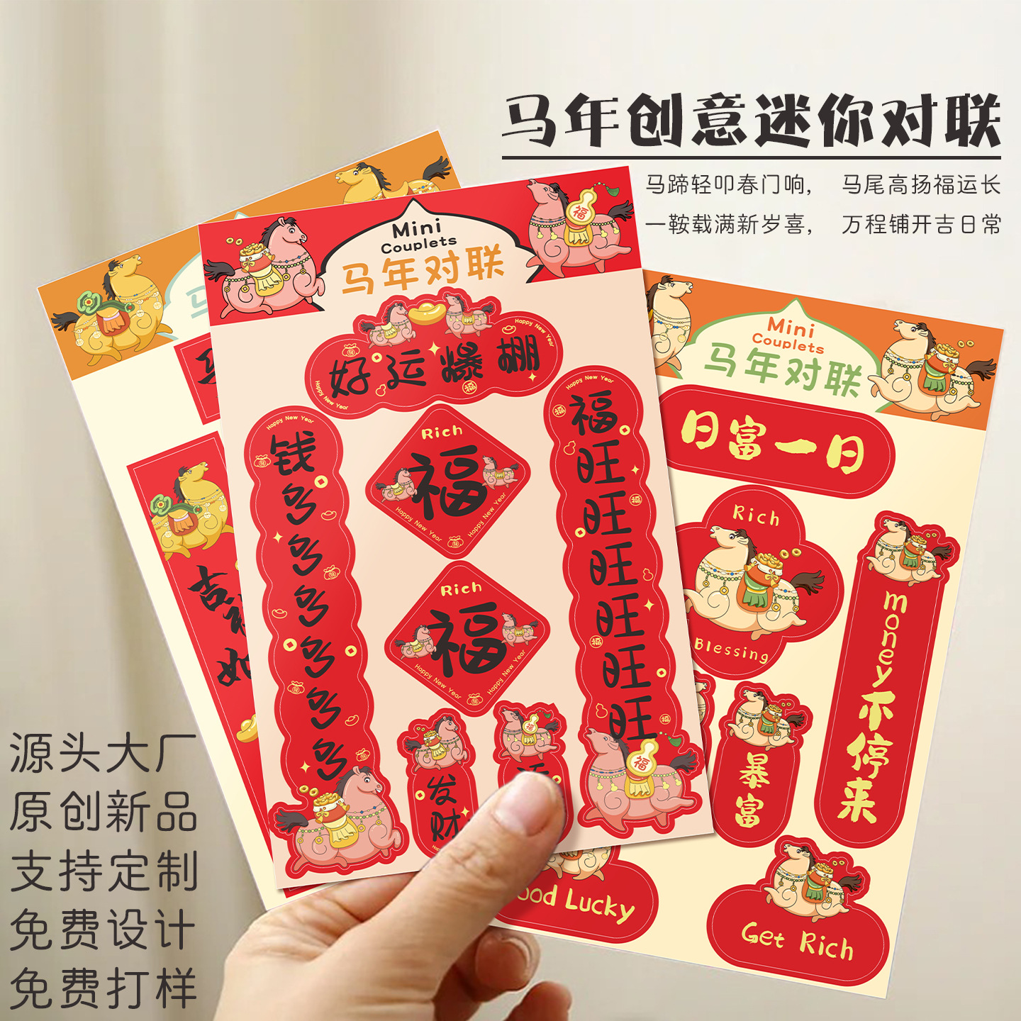 新年迷你对联贴纸创意卡通马年2026新款厂家现货福字春节手机贴纸