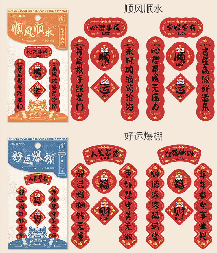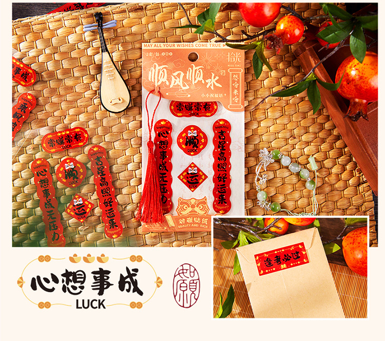 長楽常安ミニ対聯箔押しシール国風新年書道祝福手帳携帯ケース装飾貼り絵