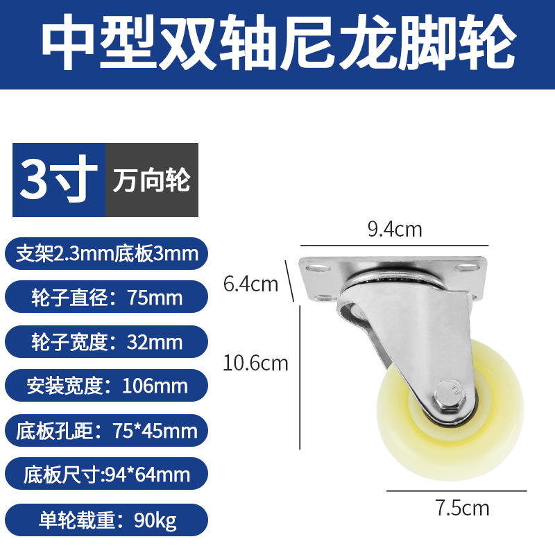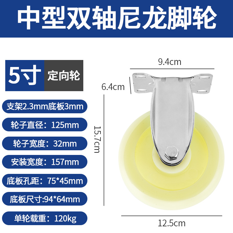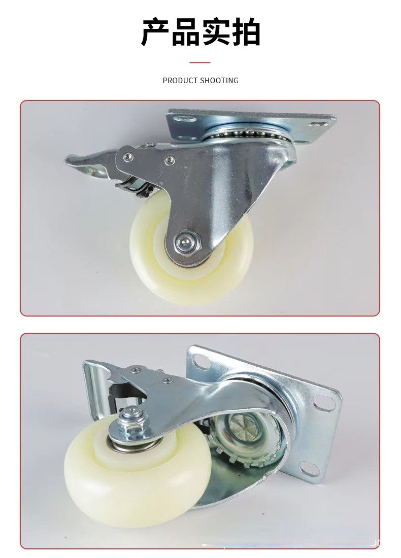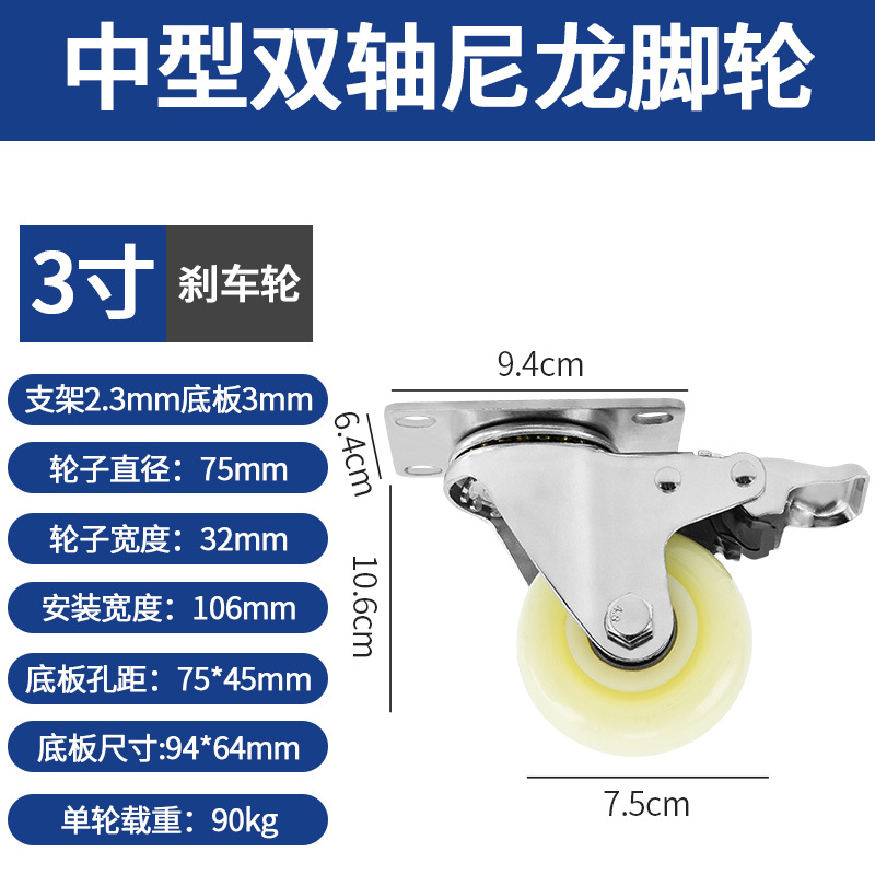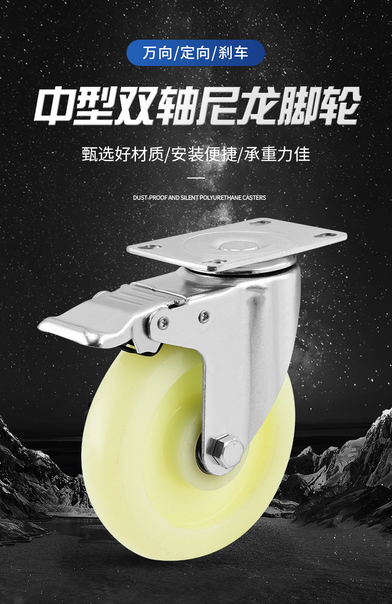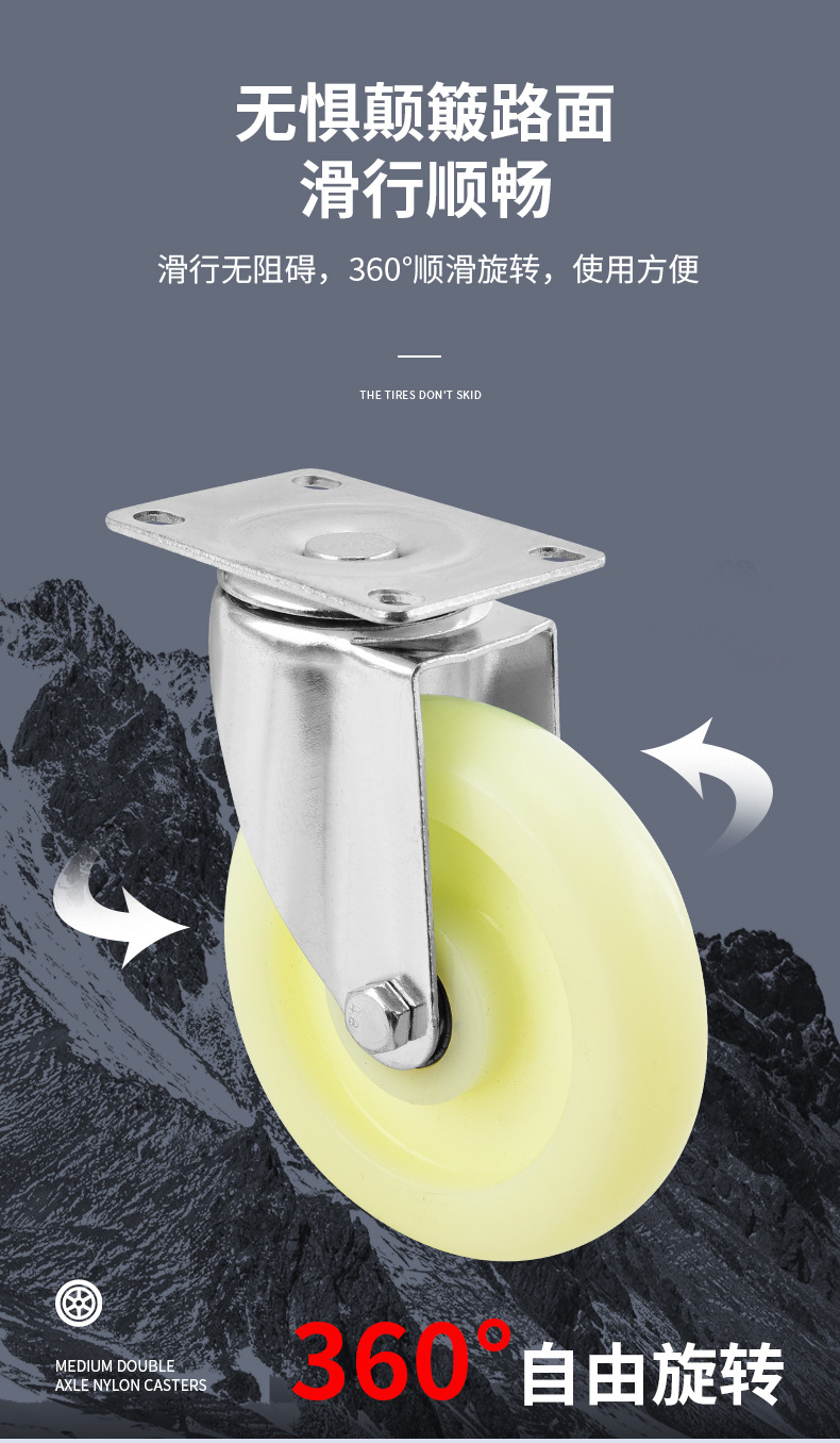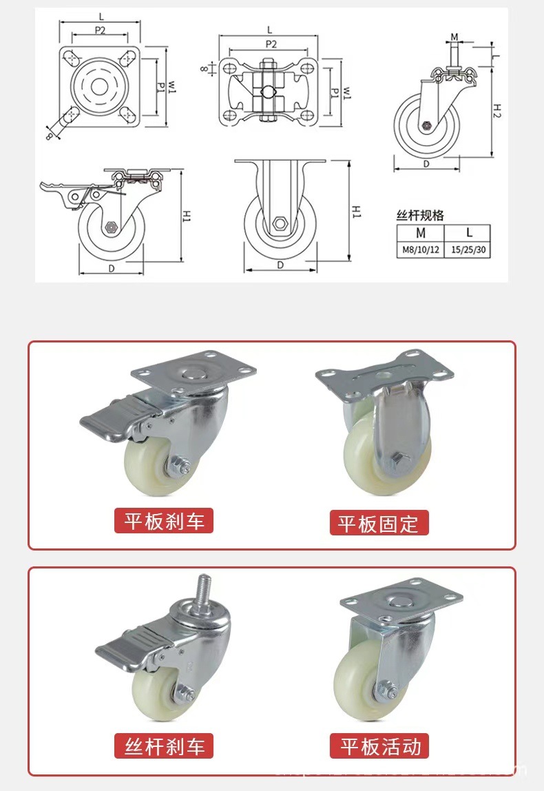 万向轮轮子3寸工业定向轱辘4/5寸平板小推车轻型尼龙脚轮带刹车