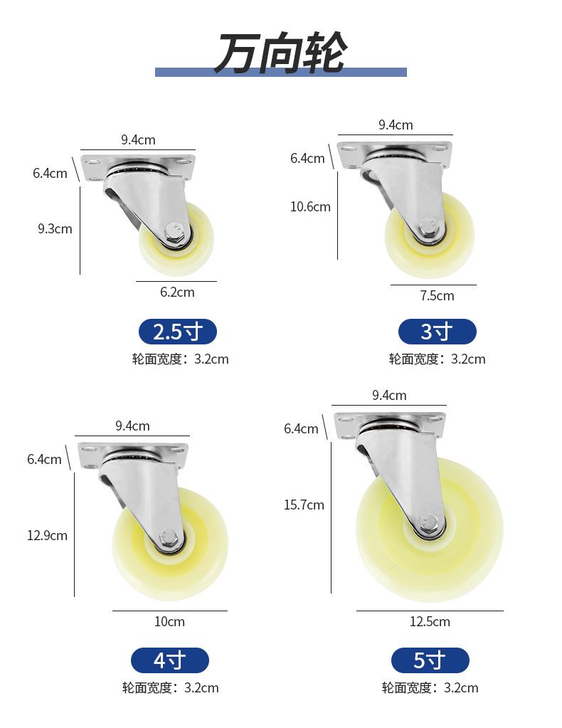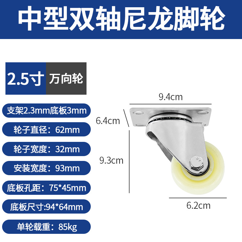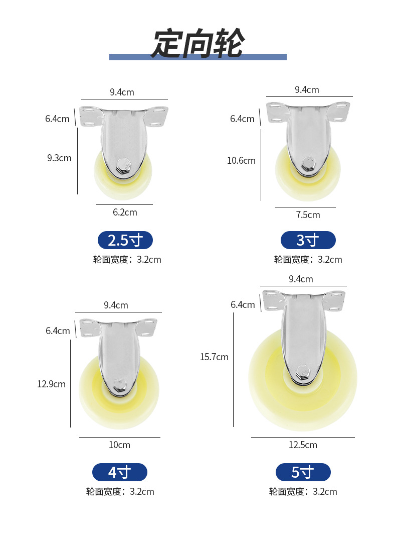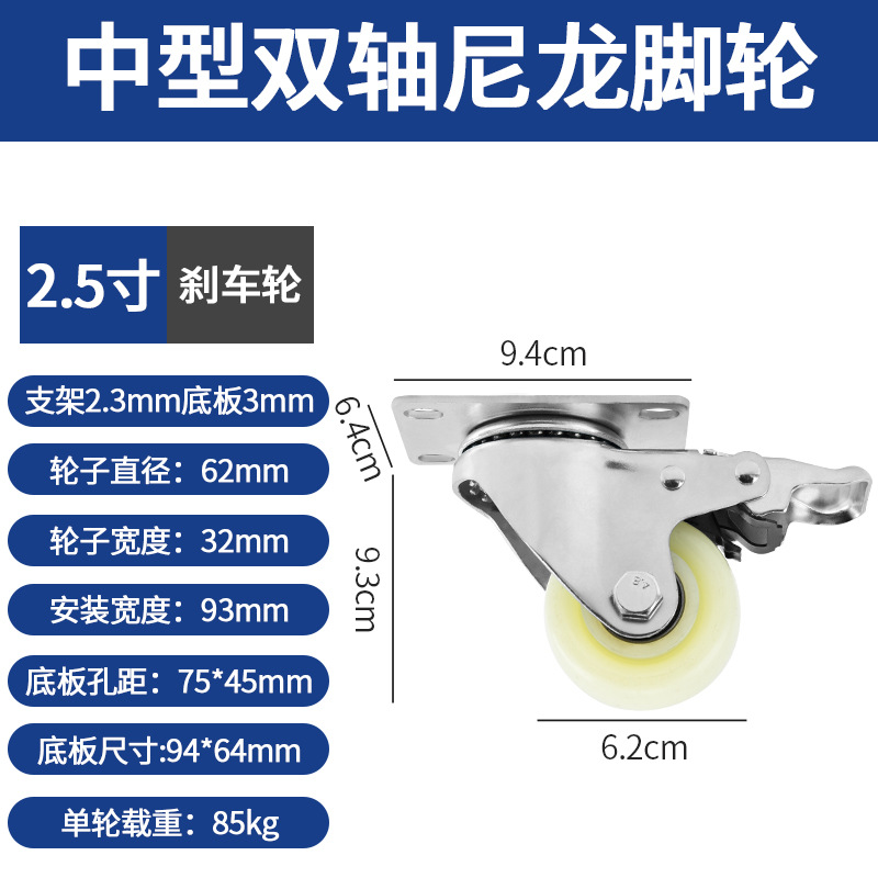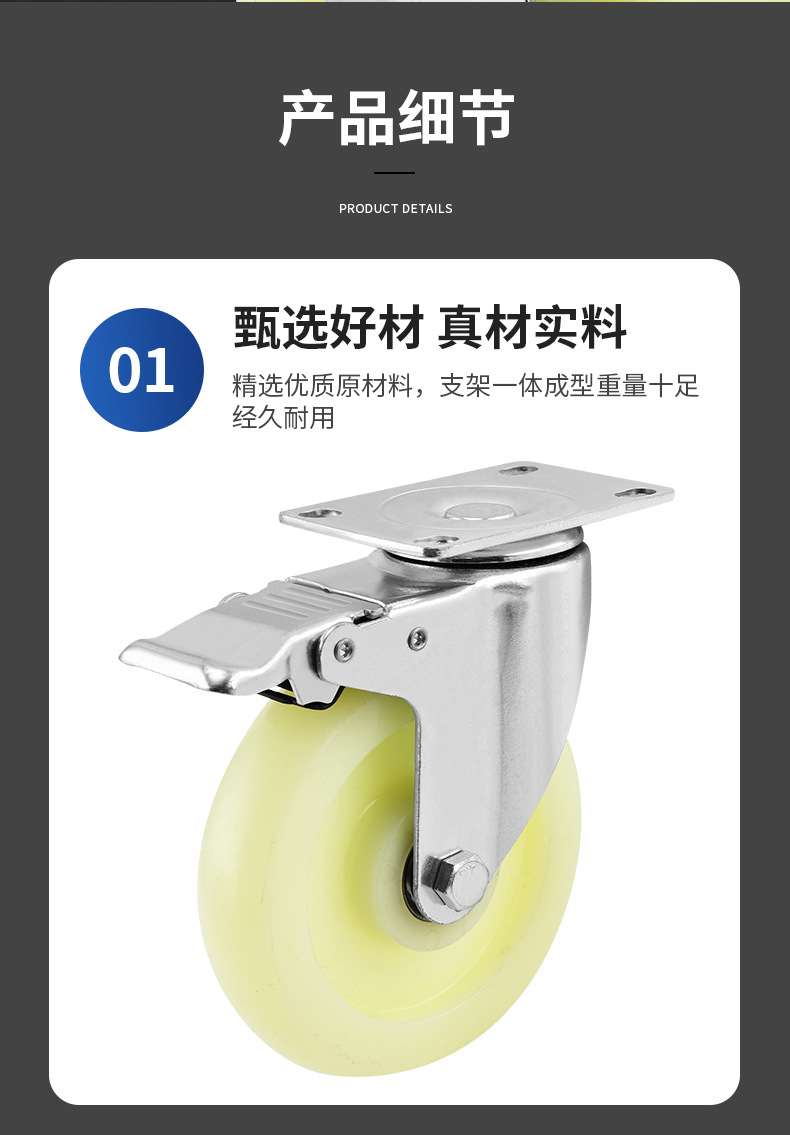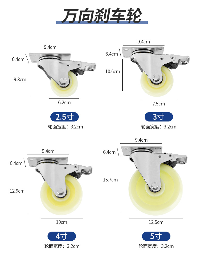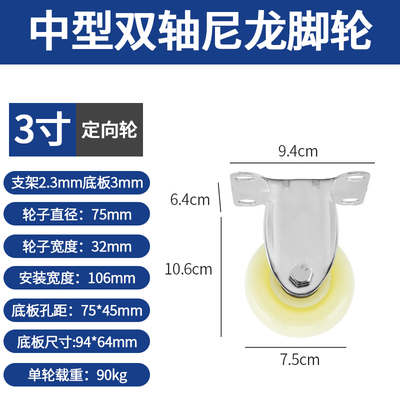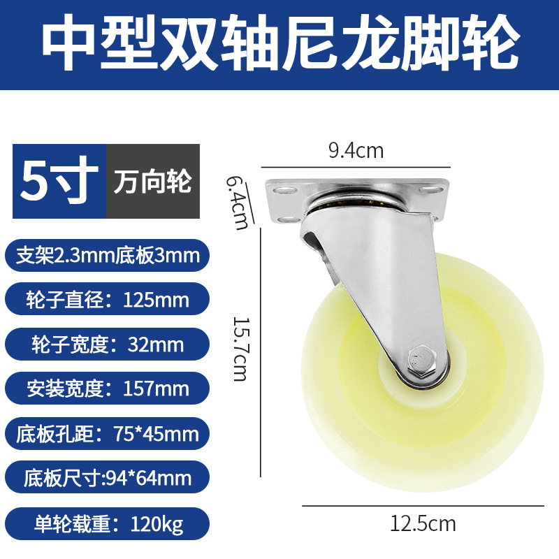 万向轮轮子3寸工业定向轱辘4/5寸平板小推车轻型尼龙脚轮带刹车