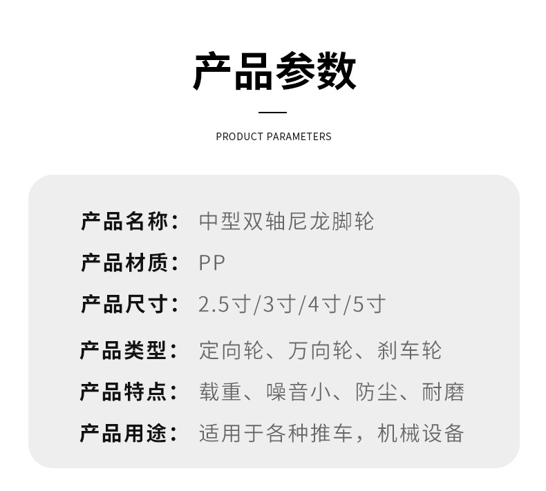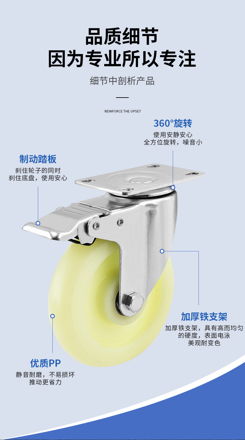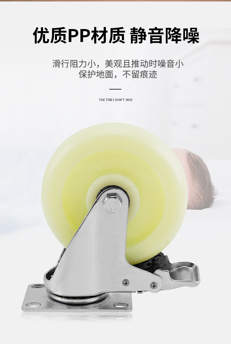 ユニバーサルホイールナイロン 3インチ 4インチ 5インチ 6inch 8inch 中型ヘビーデューティーホイールカート フラットホイールブレーキ PPホイール