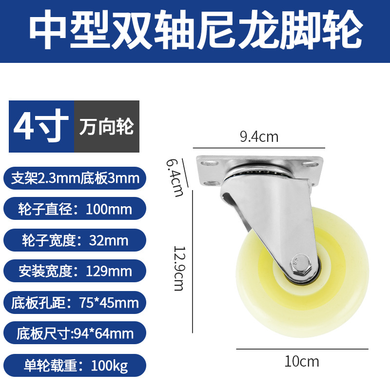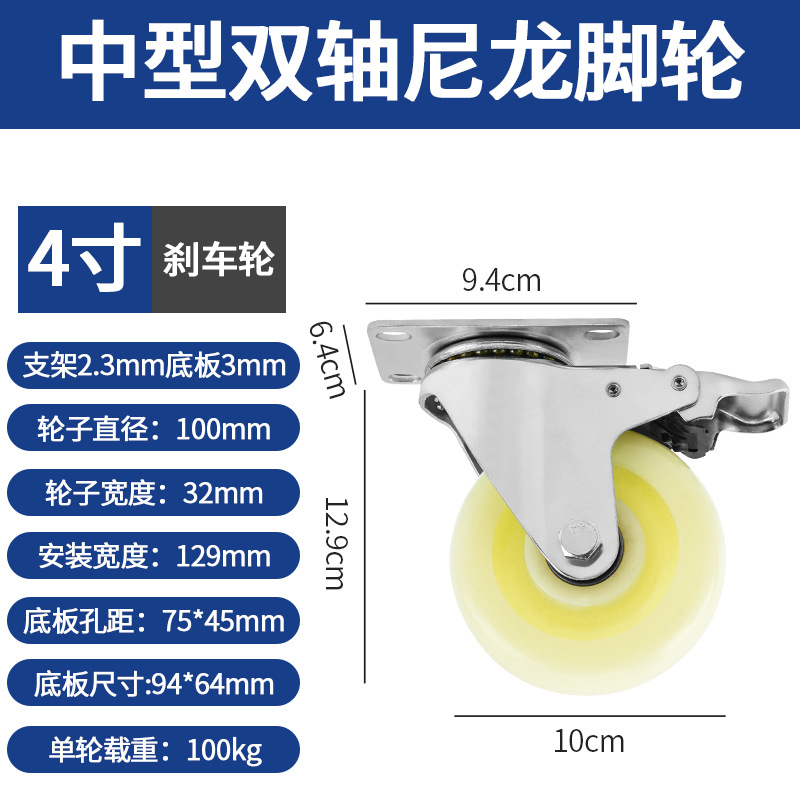 【ナイロン万能ホイール】4インチ5インチ6インチ8インチ重ナイロンホイール工業ブレーキホイール手押し車ホイールメーカー