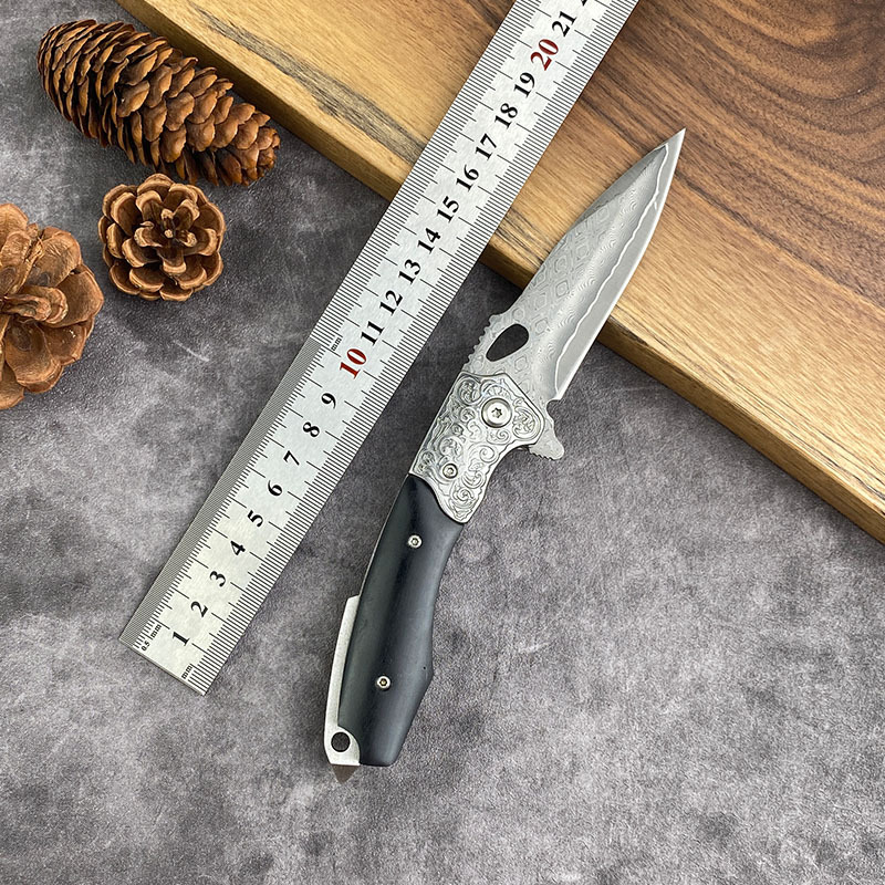 ダマスカス鋼屋外キャンプ携帯多目的フルーツナイフポケット折り畳みナイフ鋭利で身を守るナイフ