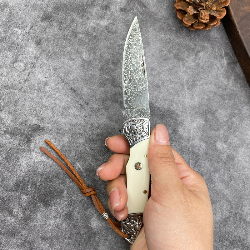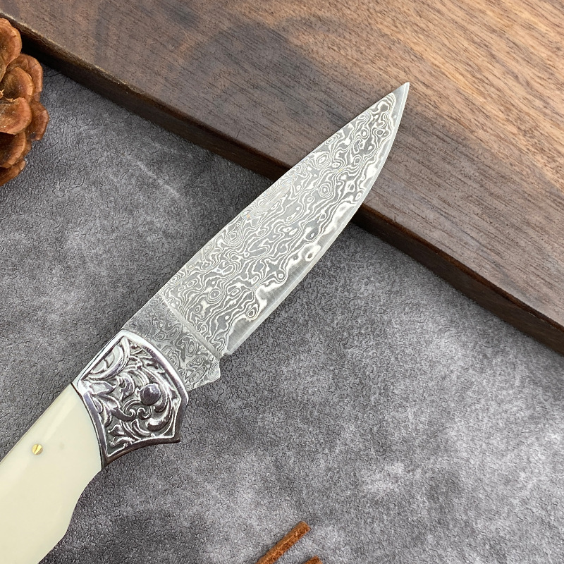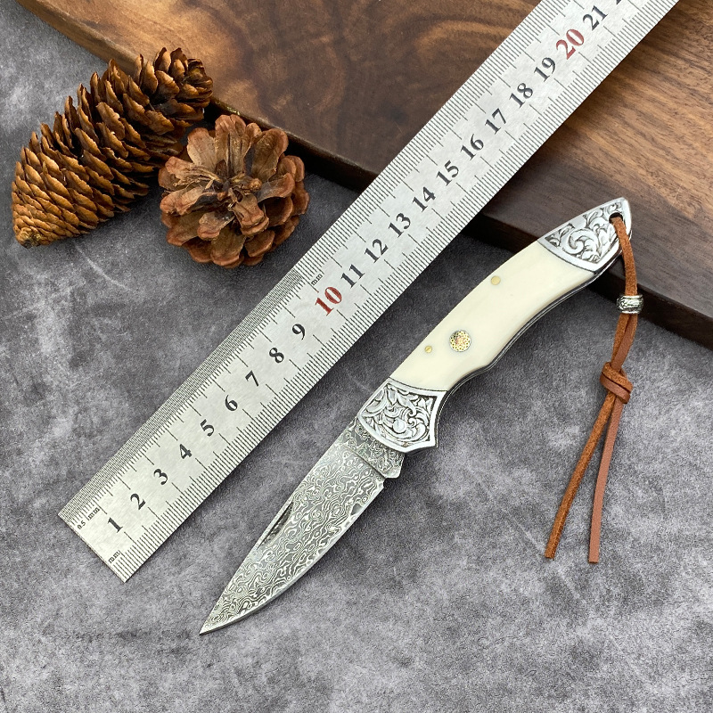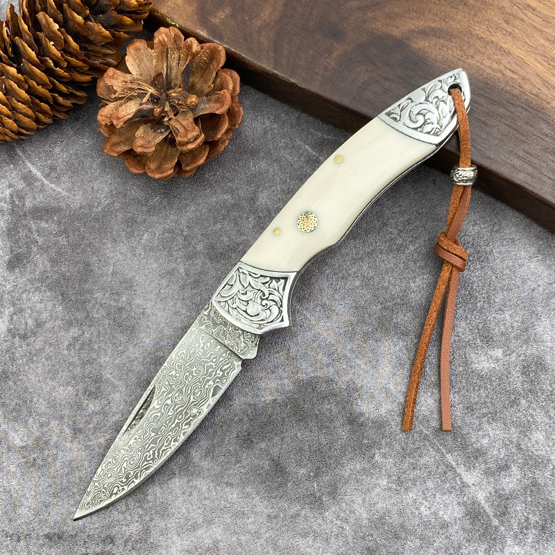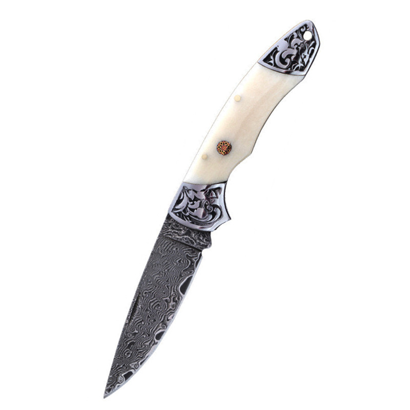 国境を越えたダマスカス鋼折り畳み刀牛スリ刀ミニナイフ果物刀携帯屋外超鋭利刃物