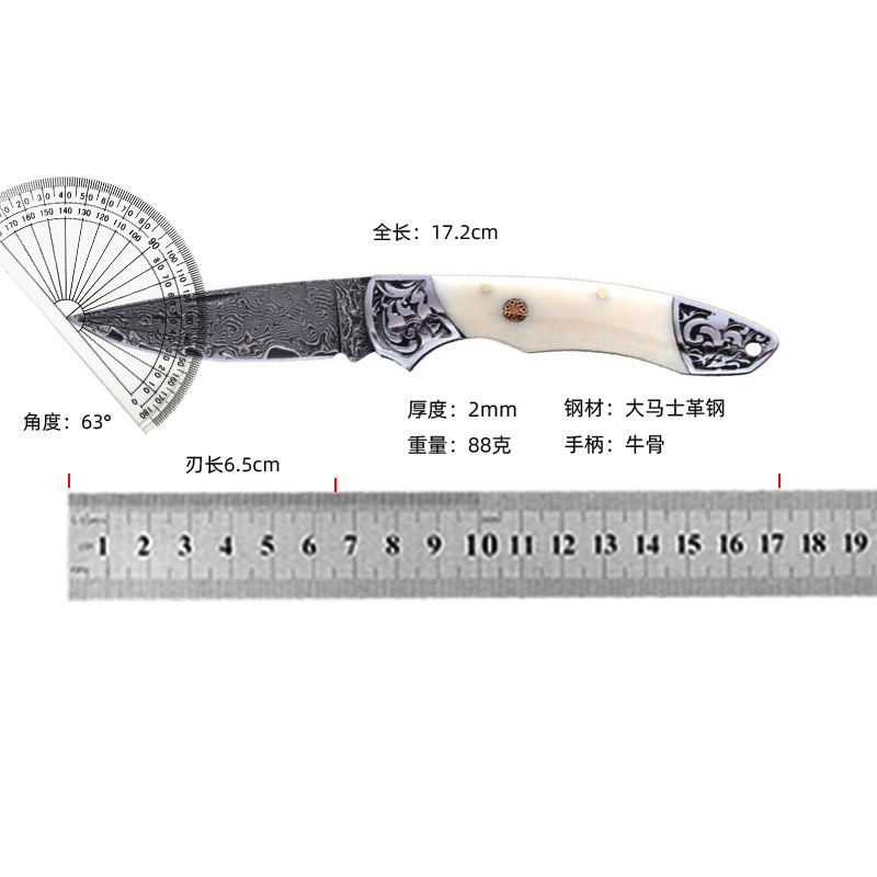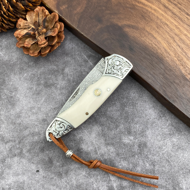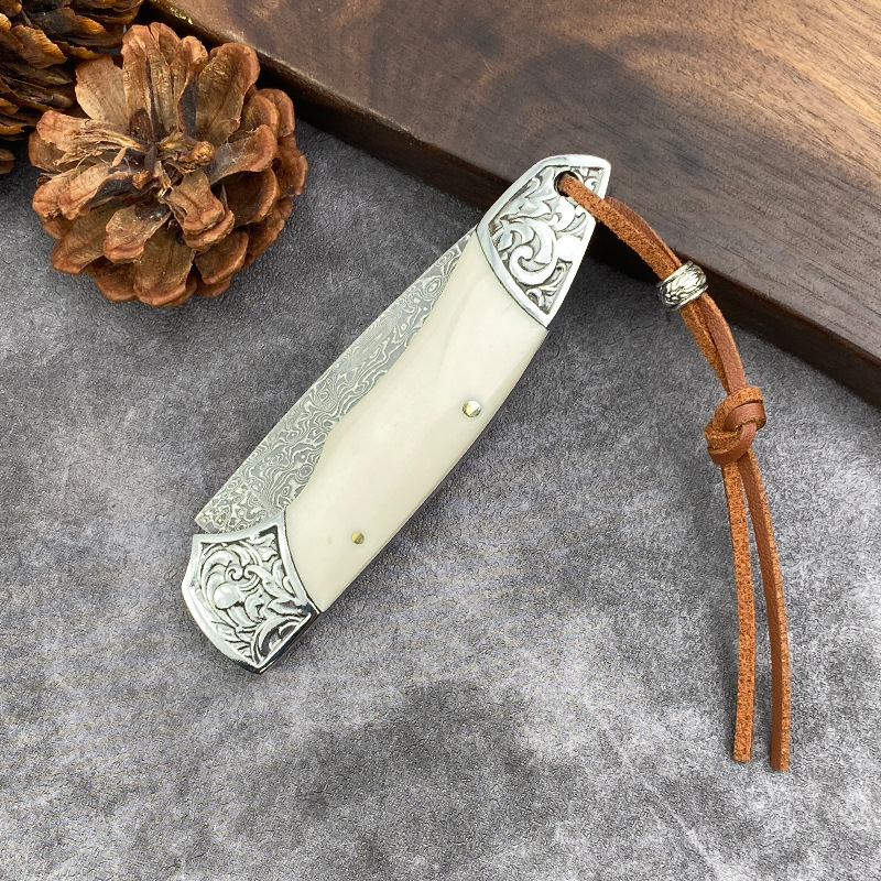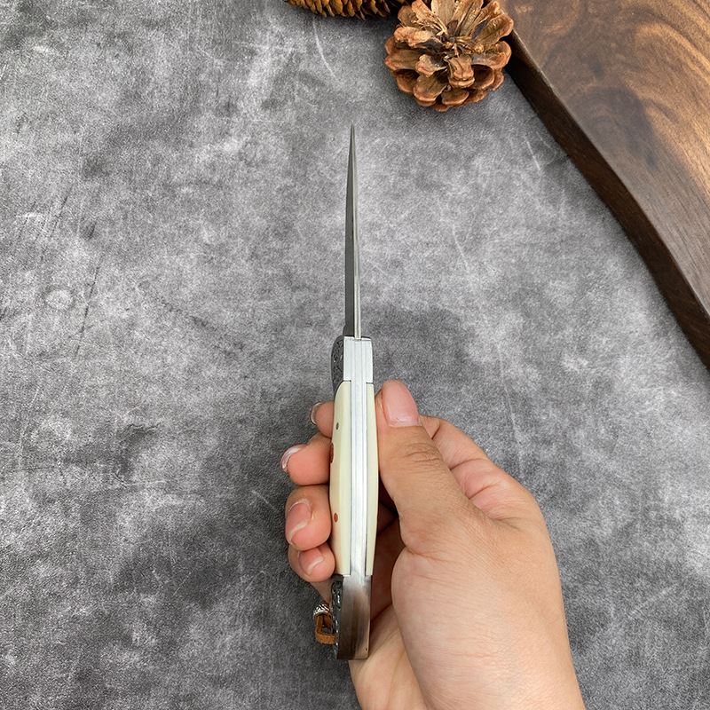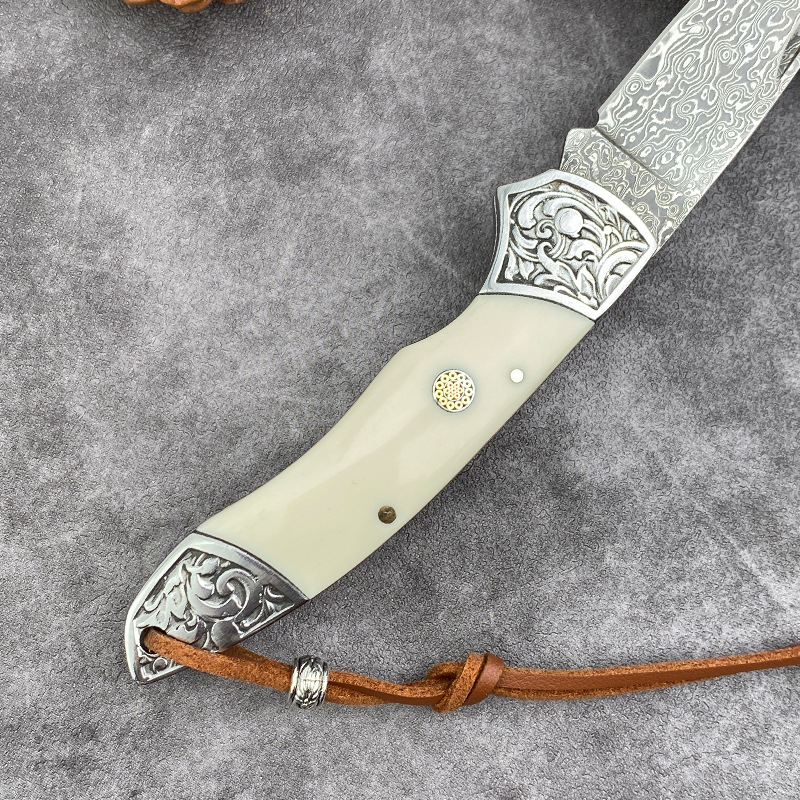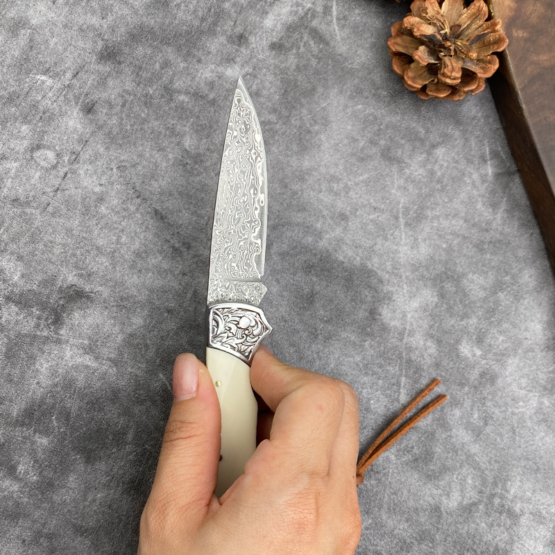 国境を越えたダマスカス鋼折り畳み刀牛スリ刀ミニナイフ果物刀携帯屋外超鋭利刃物