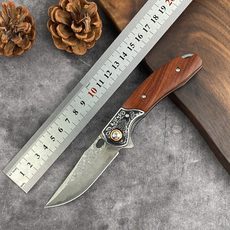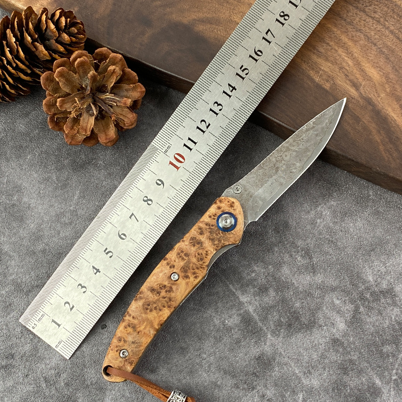 戸外果物ナイフ67階ダマスカスキャンプでは、果物ナイフ折り畳みナイフの実木ハンドルを使ってナイフを折ることが多い