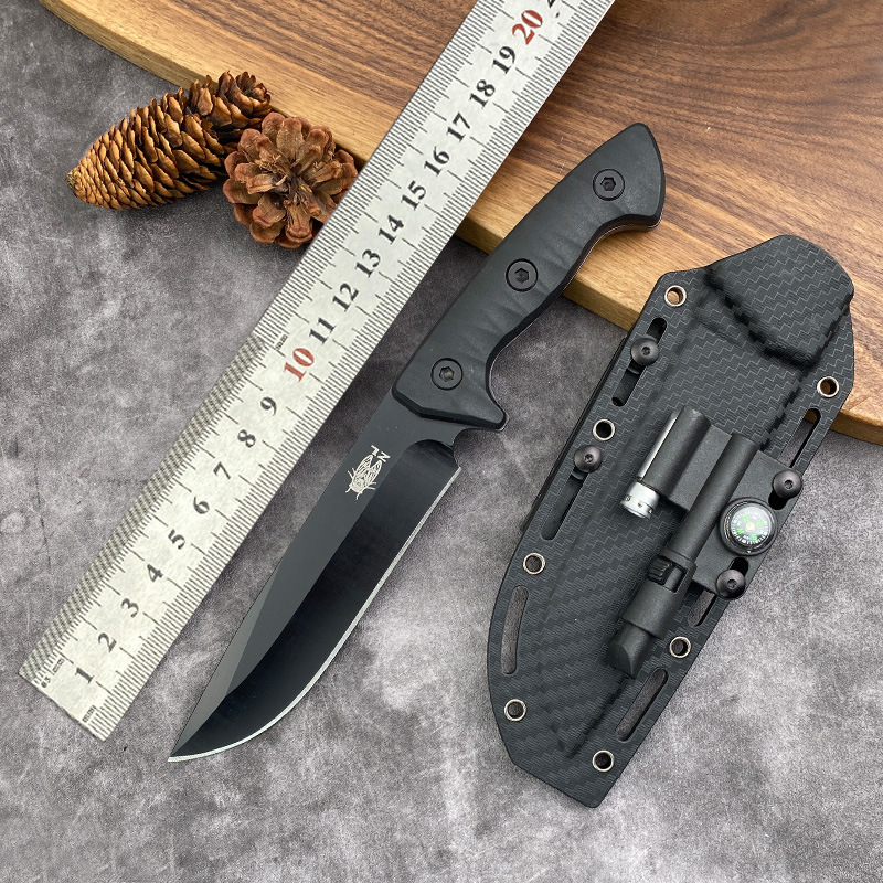 クロスボーダー高硬度K鞘直刀野外求生刀携帯小刀一体竜骨戦術直刀多機能刀