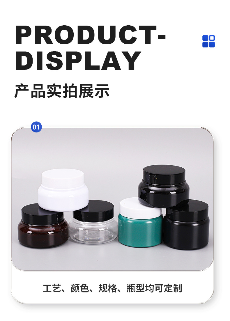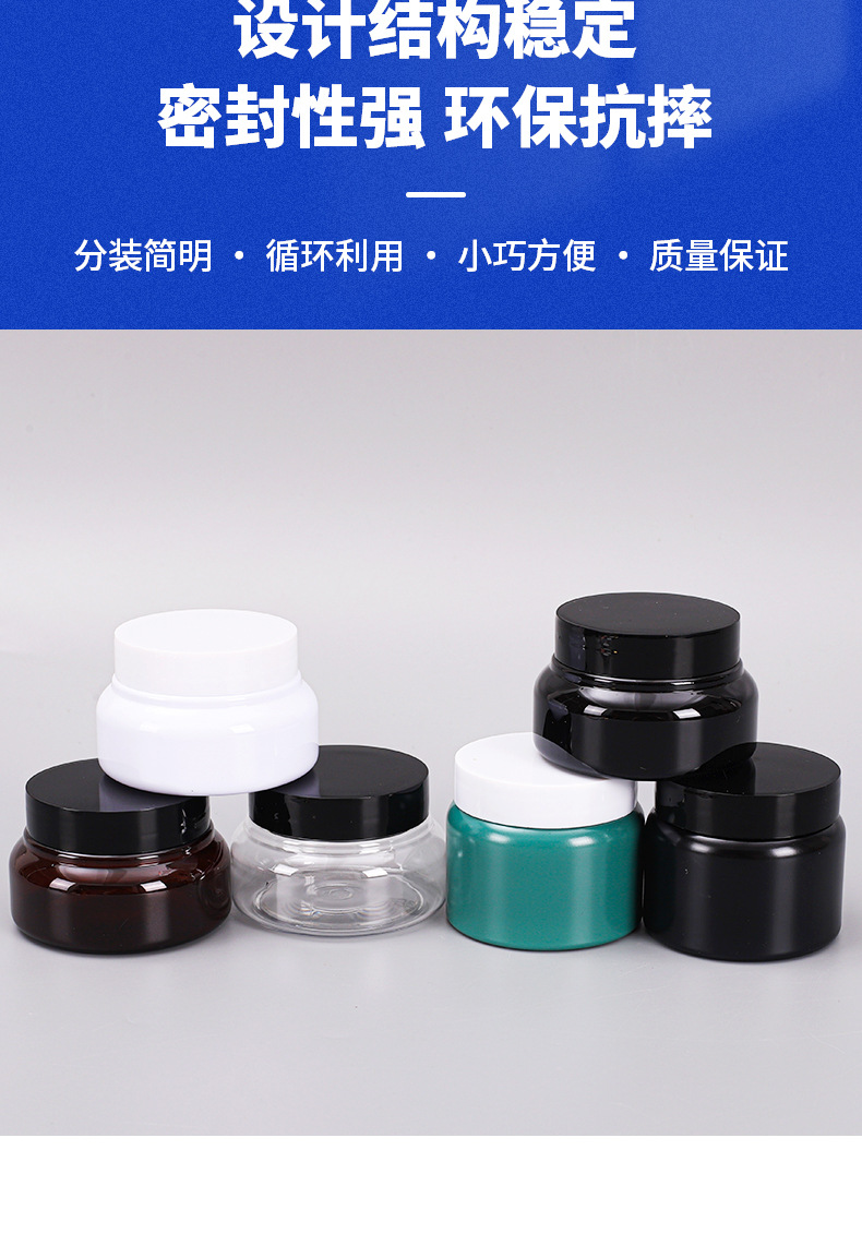 30/50/100200500黒色茶色白色透明プラスチック缶クリーム瓶ドライ缶分注瓶pet缶