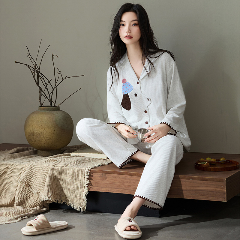クラスA抗菌100% 純綿パジャマレディース春秋レディース長袖カーディガン四季着ホームウェアレディース