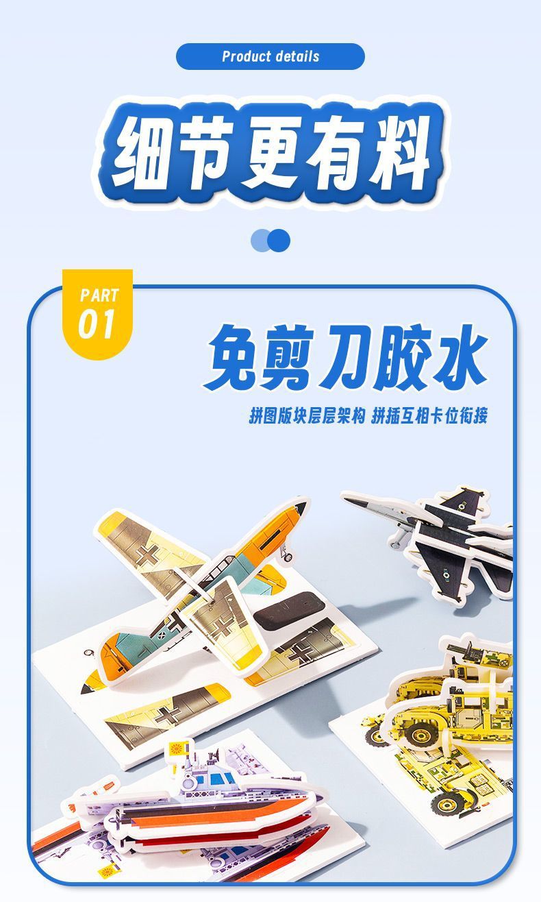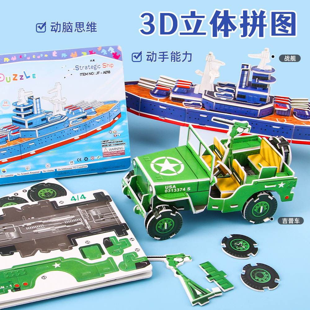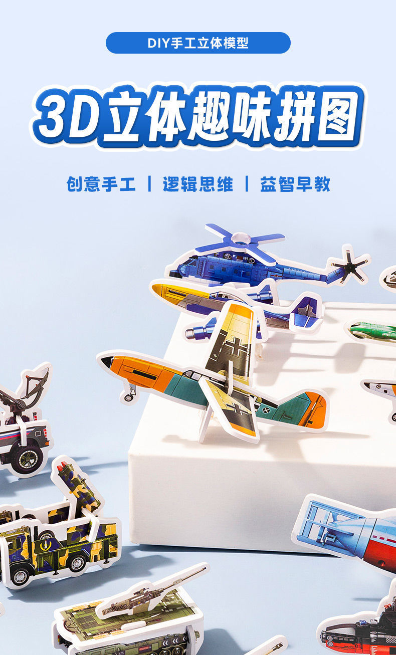 新型海陸空飛行機戦車趣味3d立体パズル幼稚園児童手作り創意組み合わせ玩具カード